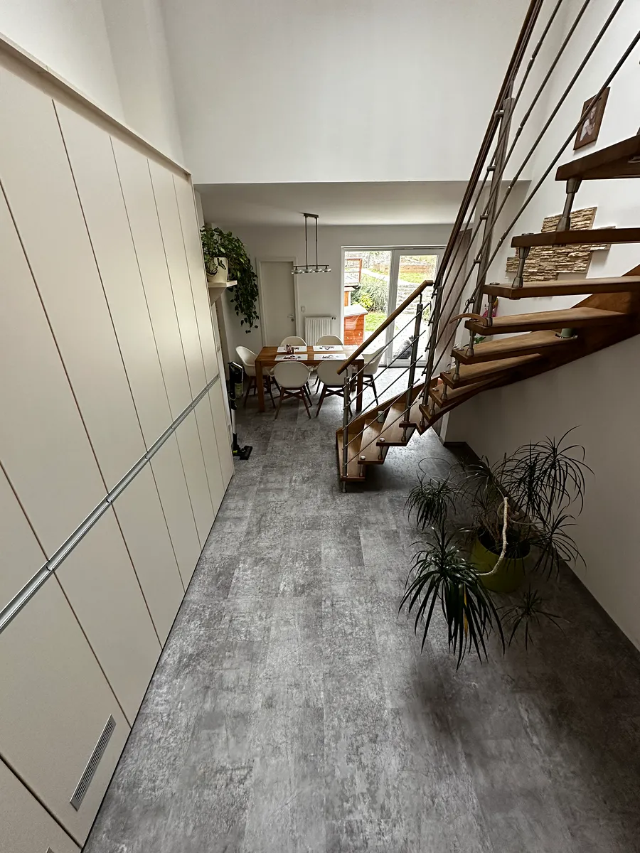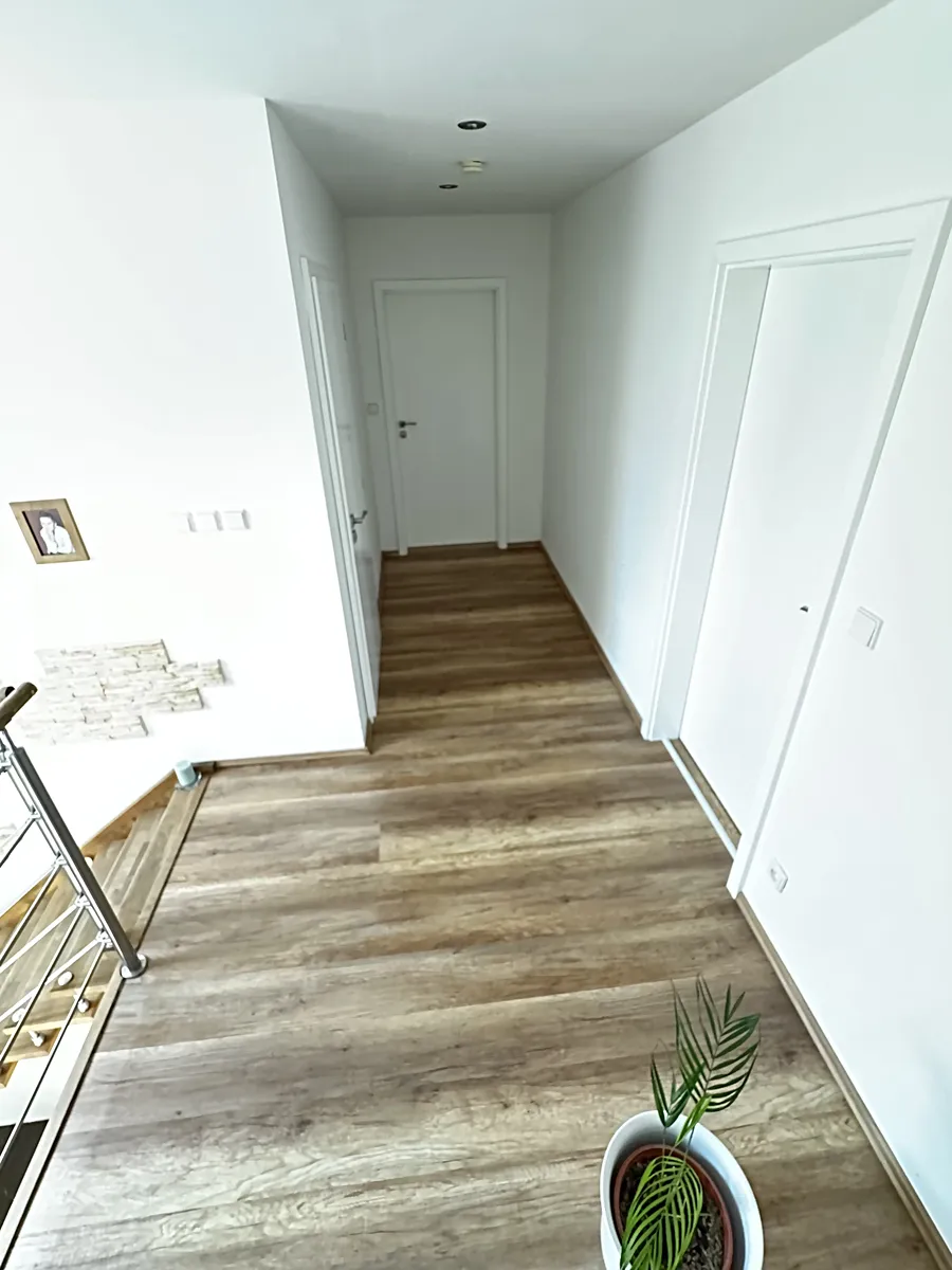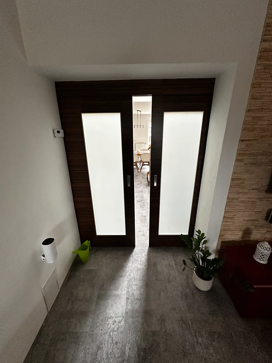 V přízemním patře RD se nachází obývací pokoj o ploše 25 m², 2 obytné místnosti o celkové ploše 34 m² a koupelna se sprchovým koutem. Z obývacího pokoje se přes prostornou halu se schodištěm a praktickými vestavěnými skříněmi dostaneme do útulného jídelního koutu, na který navazuje plně vybavená moderní kuchyň. Samozřejmostí jsou pak el. ovládané žaluzie u oken do ulice. Pro Vaše návštěvy jsou k dispozici 2 parkovací stání u vchodu do domu ze západní strany. Nové podlahy na ploše celého přízemí.