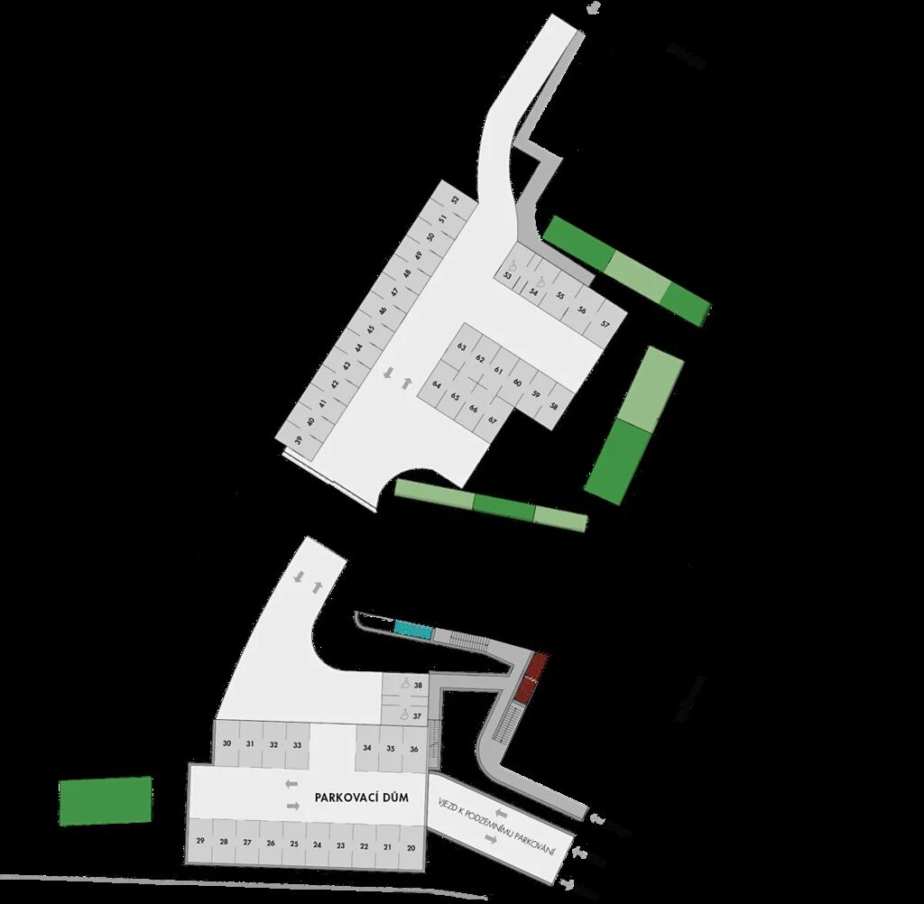 (K bytu je možné dokoupit parkovací stání ve vnitrobloku nebo v parkovacím domě.)