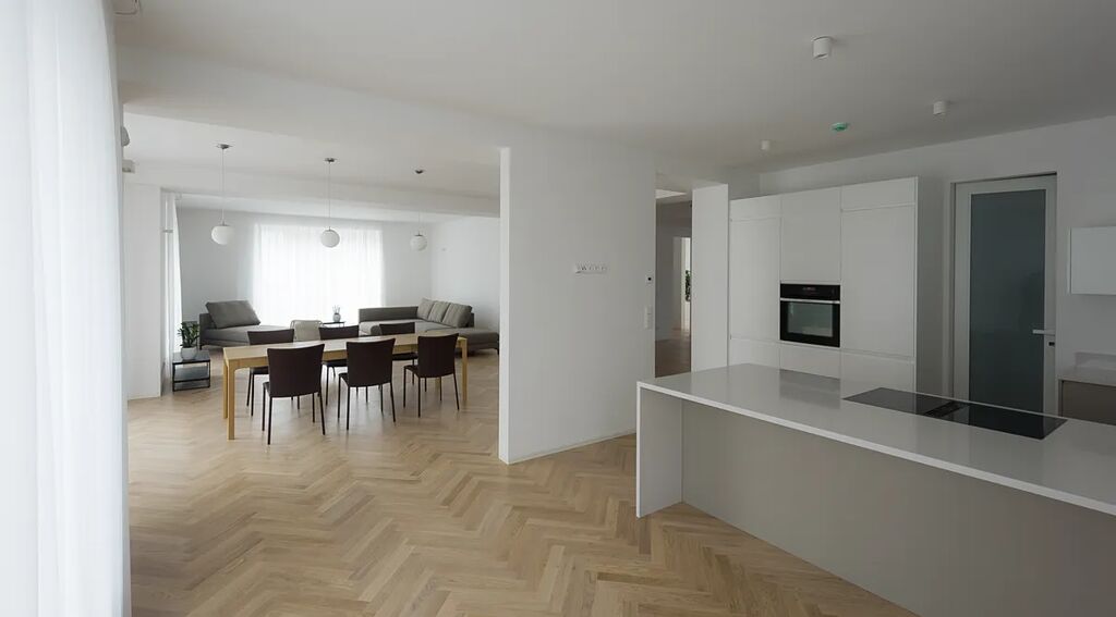 Nádherný nadstandardní byt 273 m2 s balkonem na druhém patře nově zrekonstruované prvorepublikové vile na prestižní adrese v Praze 6 - Bubenči. Byt má 5 prostorných ložnic, vzdušný obývací pokoj propojený s jídelnou, plně vybavenou Armony/Kuppersbusch kuchyň, 4 koupelny s vybavením Vileroy&Boch, 1 samostatnou toaletu, technickou místnost. K bytu náleží 2 garážovaná parkovací stání a sklepní kóje.