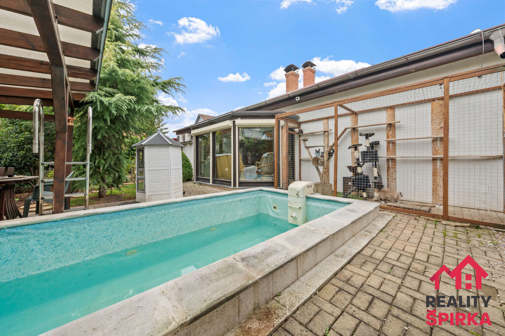Nabízíme k prodeji velký rodinný dům o dispozici 5+2, který se nachází v klidné lokalitě obce Moravany, pouhých 15 minut od krajského města Pardubice. Celková plocha pozemku činí 787 m2 z toho zastavěná plocha má 331 m2 a užitná 275 m2. Dominantou domu je prostorný obývací pokoj se zimní zahradou a krbovými kamny. Součástí dispozice jsou 4 ložnice, 2 kuchyně a nechybí ani 2 koupelny - jedna s vanou a toaletou, druhá se sprchovým koutem, toaletou a infračervenou saunou. Vytápění zajišťuje elektrická energie včetně podlahového vytápění, klimatizace a fotovoltaické panely zn. Fronius, které přispívají úsporám na provozních nákladech. Podlahy kombinují dlažbu a plovoucí podlahu, což dodává interiéru útulnost i praktičnost. Dům je napojen na elektřinu a obecní vodovod, k dispozici je také vlastní studna, přičemž plynová přípojka se nachází u domu. Na pečlivě udržované zahradě o rozloze 456 m2 najdete ideální prostor pro relaxaci i volný čas – nechybí pergola, zahradní domek se saunou, ani bazén s protiproudem, a společné grilování s přáteli si zde také užijete. At už jste velká rodina nebo hledáte ideální řešení pro dvougenerační bydlení, tento dům vás nadchne svou prostorností, promyšleným uspořádáním a klidným okolím. Pokud toužíte po moderním bydlení s výbornou dostupností do Pardubic, dům v Moravanech je tou pravou volbou.