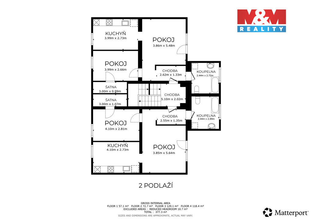 Pod jednou střechou se ukrývají také moderní matné kuchyňské linky, světlá dlažba v dekoru dřeva vyhřívaná podlahovým topením a stylové koupelny s vanou.