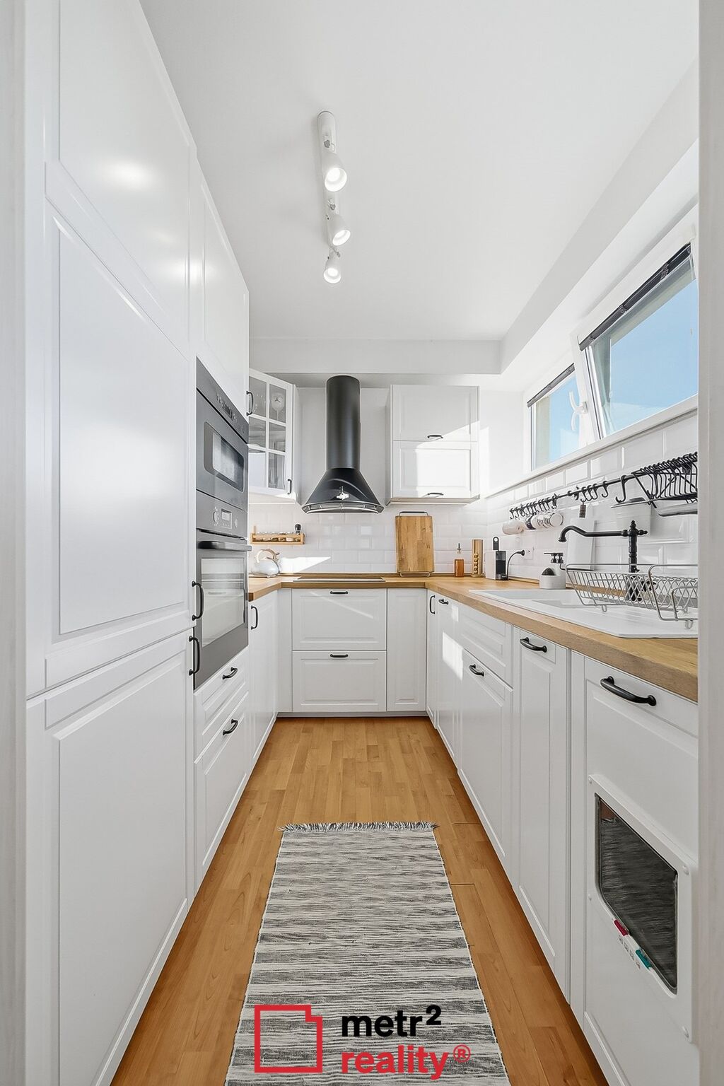Hledáte výjimečný, slunný a velmi prostorný byt v Uničově? Ve výhradním zastoupení majitelů si Vám dovolujeme nabídnout byt v cihlovém domě, který byl zkolaudován v roce 2011. Byt je v osobním vlastnictví, o dispozici 4+1 a je umístěn v posledním, 7. patře bytového domu s výtahem. Byt má krásnou podlahovou plochou 99,32 m2, součástí bytu je zasklená terasa a balkon o celkové výměře 7,33 m2 a sklep v přízemí domu o výměře 4,62 m2. Byt disponuje prostornou vstupní chodbou, koupelnou se sprchovým koutem i vanou, WC je zvlášť. Z obývacího pokoje je vstup do dětského pokoje a kuchyně. Další dvě ložnice jsou se samostatnými vstupy. Součástí dětského pokoje je i samostatná šatna. Z obývacího pokoje je vstup francouzským oknem na zasklenou terasu s krásným výhledem do okolní krajiny. Byt je krásně vybavený ve venkovském stylu, včetně kuchyňské linky na míru, jejíž součástí jsou vestavěné spotřebiče. Poté, co stávající majitelé byt koupili, předělali si jej k obrazu svému a byt zmodernizovali, je nově obložená koupelna i WC, nová kuchyňská linka, interiérové dveře, včetně obložkových zárubní, mezi kuchyní a obývacím pokojem jsou posuvné dveře do pouzdra. V obývacím pokoji je klimatizace, která ochladí v parných dnech. V případě zájmu o byt jsou majitelé připraveni jednat o přenechání užívání oplocené zahrady se zahradním domkem, kterou mají v nájmu od Města a která se nachází hned za domem. V bezprostřední blízkosti bytu se pak nachází veškerá občanská vybavenost, škola, školka, poliklinika, obchody. Do centra města je to pěšky 5 minut. Město Uničov je velmi dobře sjízdné do Olomouce, autem 25 minut, což byt činí zajímavým i pro klienty z Olomouce, kterým nevadí dojíždění a ocení kouzlo a klid menšího města. V případě zájmu o prohlídku nás neváhejte kontaktovat a rádi Vám ji domluvíme.
