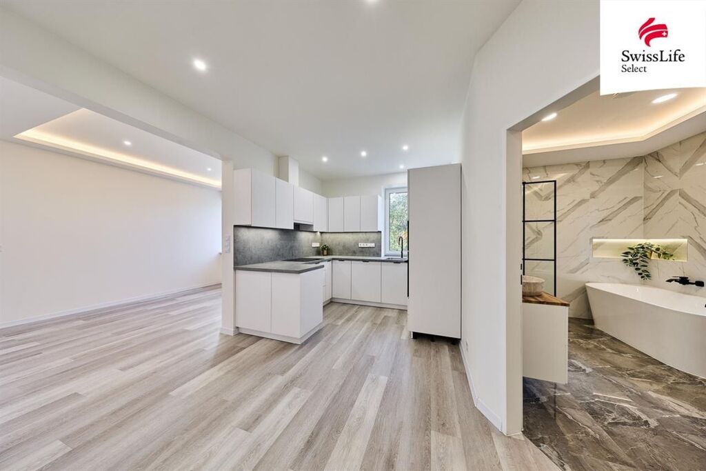 Byt prošel kompletní rekonstrukcí - nové rozvody elektřiny, vody a odpady, nová kuchyňská linka se spotřebiči, modernizována koupelna, plastová okna, nové stropy a omítky, nové vinylové podlahy. Dům je nově zateplený. Vytápění je řešeno podlahovým topením napojeným na horkovod. Ohřev vody el. bojler. PENB zatím třídy E probíhá finalizace rekonstrukce (zateplení fasády, střechy a nová okna). Po dokončení bude nový energetický štítek s nižší energetickou třídou.
