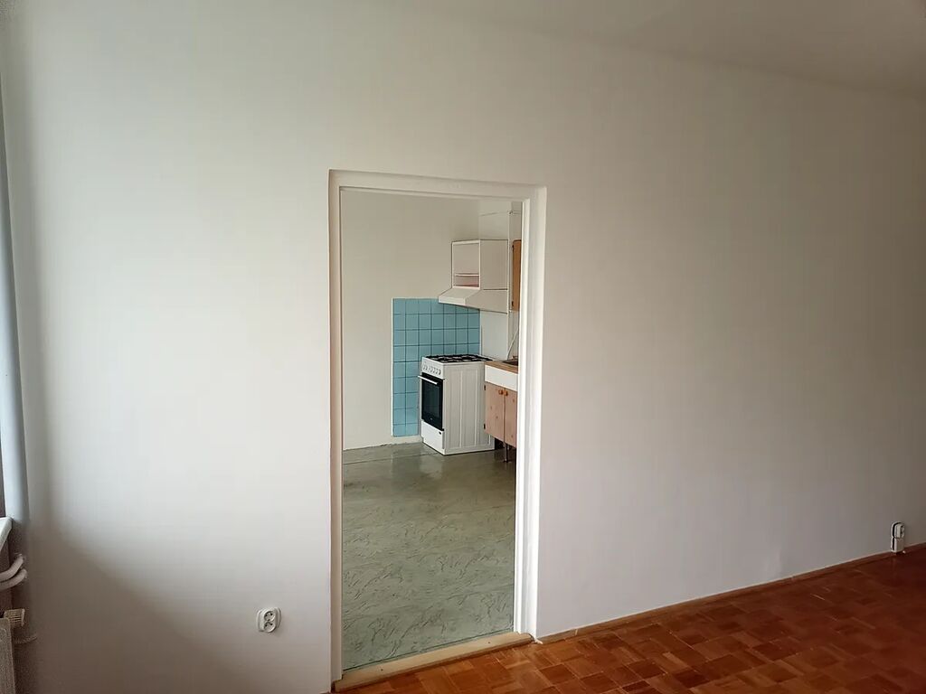 Jedná se tak o velmi prostorný byt 1+1 s širokou vstupní šatnou i chodbou před soc.zařízením. Obývací pokoj i kuchyň mají samostatnou zasklenou lodžii s výhledem do krajiny. Byt se skládá ze vstupní chodby (šatny) se vstupem nalevo do samostatné místnosti bez oken s možností využití jako sklad či pracovna, proti vstupu je umístěný obývací pokoj s průchodem do kuchyně propojenou přes chodbu se šatnou do vstupní části. Z této chodby je vstup do koupelny s WC po rekonstrukci včetně ker.obkladů a rozvody instalací i do kuchyně. Na chodbě u výtahů je společná komora pro další tři byty na patře a v suterénu je samostatná sklepní kóje. Objekt domu je dvanáctipodlažní s bezbariérovým vstupem do přízemí a samostatným vstupem do suterénu přes bet.rampu u parkoviště pod domem s navazujícími dvěma samostatnými výtahovými šachtami. Celý dům prošel rekonstrukcí s novým zateplením kontaktní fasádou, výměnou všech oken za plastové s izolačním sklem, nové rozvody ovládání vstupních dveří včetně zvonků, novými výtahy, kamerovým systémem zabezpečení domu… .