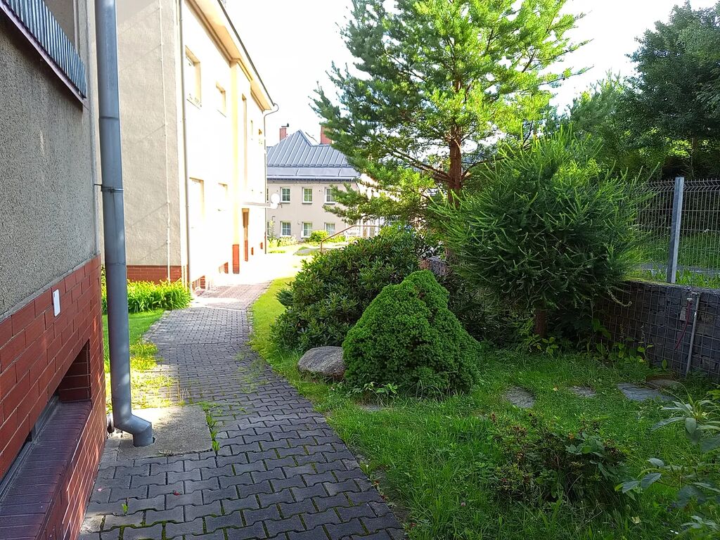 (Majitelé k bytu přenechají užívání pěkné zahrady pod domem se zavedenou vodou a elektřinou.)