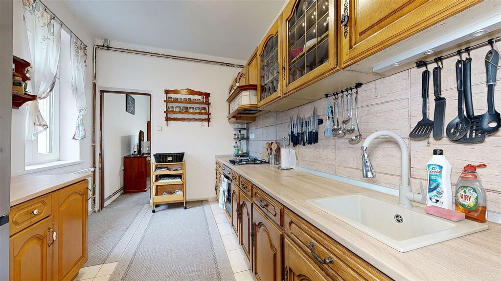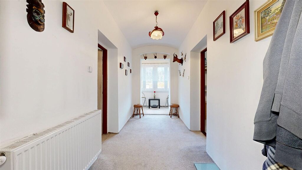 Nabízíme exkluzivně k prodeji rodinný dům se dvěma bytovými jednotkami, malou zahradou a sklepy v obci Dobkovice nedaleko Děčína. V přízemí se nachází plně rekonstruovaná bytová jednotka s dispozicí 3+1 se zimní zahradou, vytápěná elektrickým kotlem a s krbovými kamny v obývacím pokoji. V patře se nachází další bytová jednotka 3+1 s koupelnou a WC, v kuchyni je připraven přívod vody, vytápění je kamny na tuhá paliva a akumulačními kamny, jsou připraveny radiátory a je možné byt napojit na stávající elektrický kotel, případně instalovat samostatný kotel pro horní byt. Horní byt má místo zimní zahrady balkon s krásným výhledem na Labe. Konstrukce domu je smíšená, převážně cihlová, okna v celém domě jsou plastová, případně střešní dřevěná. Dům je částečně zateplený. Střešní krytina je plech. Dům je napojený na dostupné inženýrské sítě elektřinu, vodovod a kanalizaci. K domu patří menší zahrádka s krytým posezením, garáž má bohužel nevyhovující nájezd a slouží jako dílna. Dům je podsklepený, místnosti slouží hlavně ke skladování. Obec Dobkovice disponuje základní občanskou vybaveností s výborným dojezdem do Děčína i do Ústí nad Labem. K dispozici je návrh a rozpočet rekonstrukce domu v rámci programu Oprav dům po babičce. Bližší informace rádi podáme a zajistíme prohlídku domu.