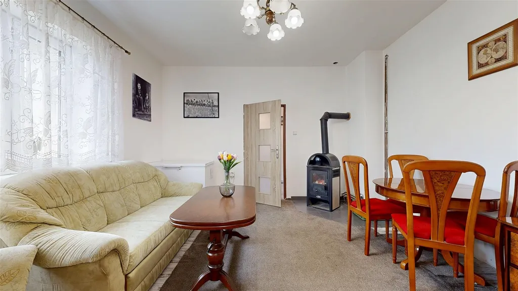 Nabízíme exkluzivně k prodeji rodinný dům se dvěma bytovými jednotkami, malou zahradou a sklepy v obci Dobkovice nedaleko Děčína. V přízemí se nachází plně rekonstruovaná bytová jednotka s dispozicí 3+1 se zimní zahradou, vytápěná elektrickým kotlem a s krbovými kamny v obývacím pokoji. V patře se nachází další bytová jednotka 3+1 s koupelnou a WC, v kuchyni je připraven přívod vody, vytápění je kamny na tuhá paliva a akumulačními kamny, jsou připraveny radiátory a je možné byt napojit na stávající elektrický kotel, případně instalovat samostatný kotel pro horní byt. Horní byt má místo zimní zahrady balkon s krásným výhledem na Labe. Konstrukce domu je smíšená, převážně cihlová, okna v celém domě jsou plastová, případně střešní dřevěná. Dům je částečně zateplený. Střešní krytina je plech. Dům je napojený na dostupné inženýrské sítě elektřinu, vodovod, odpad je sveden do jímky. K domu patří menší zahrádka s krytým posezením, garáž má bohužel nevyhovující nájezd a slouží jako dílna. Dům je podsklepený, místnosti slouží hlavně ke skladování. Obec Dobkovice disponuje základní občanskou vybaveností s výborným dojezdem do Děčína i do Ústí nad Labem. K dispozici je návrh a rozpočet rekonstrukce domu v rámci programu Oprav dům po babičce. Bližší informace rádi podáme a zajistíme prohlídku domu.