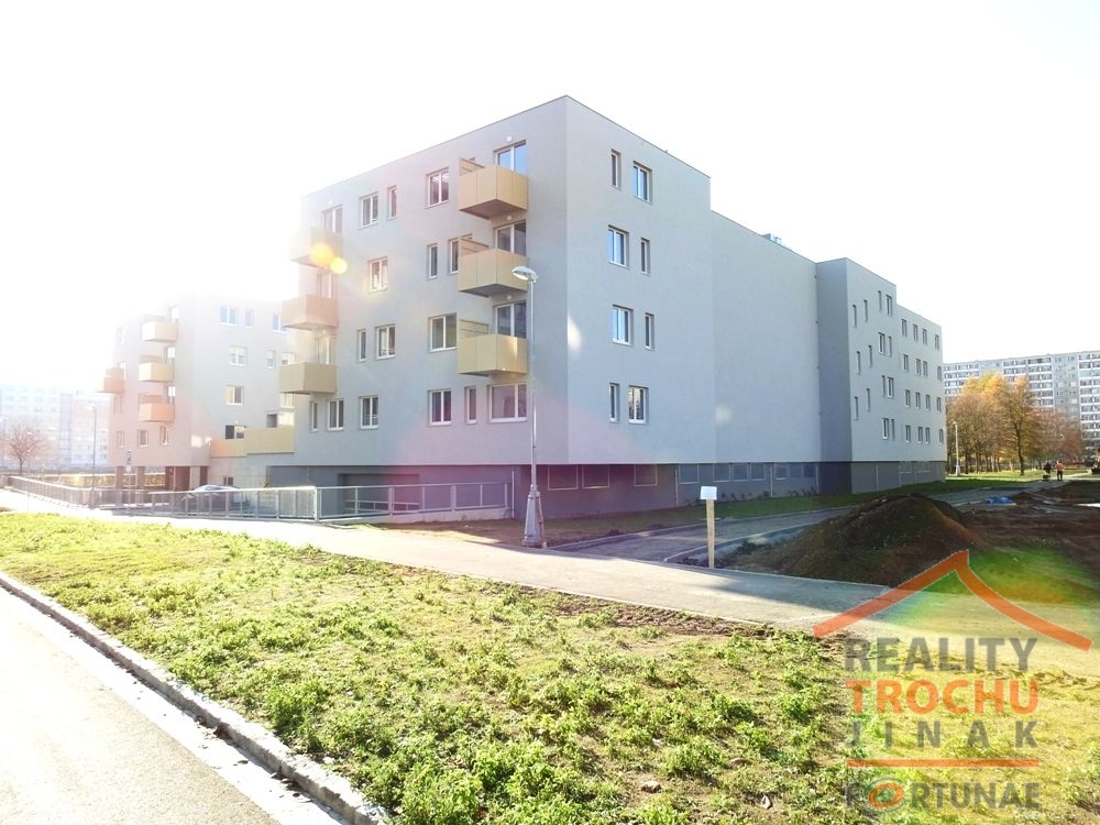 Dispozice: obývací pokoj s kuchyňským koutem, jídelnou a vstupem na balkon, koupelna (sprchový kout, WC), předsíň.