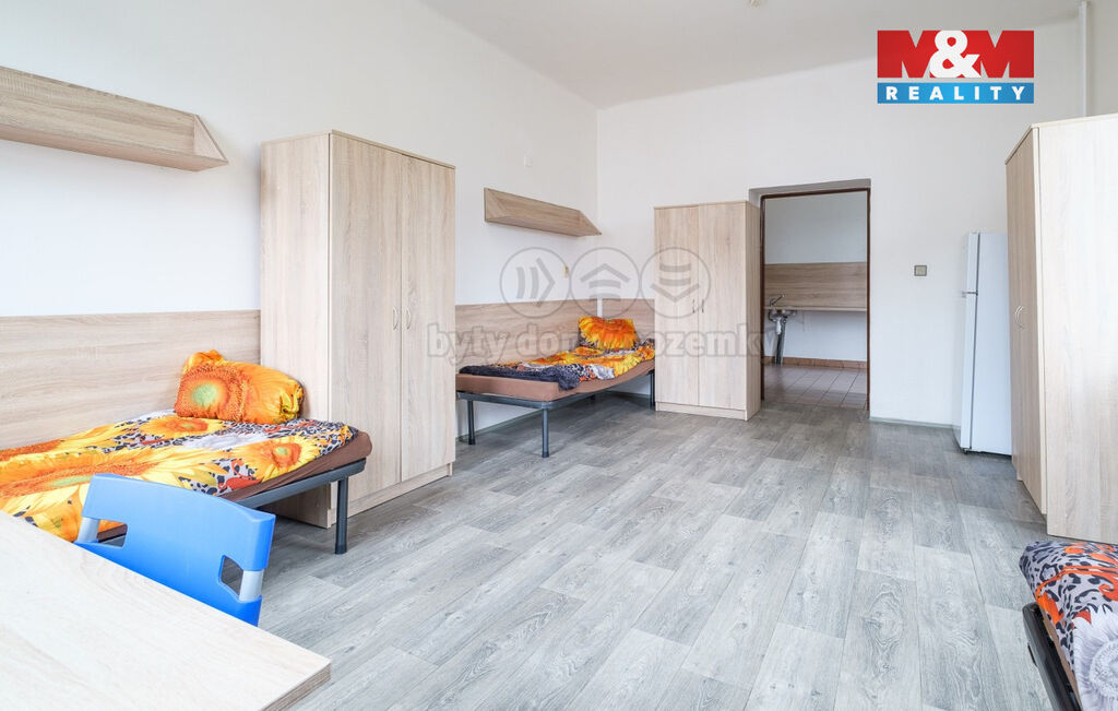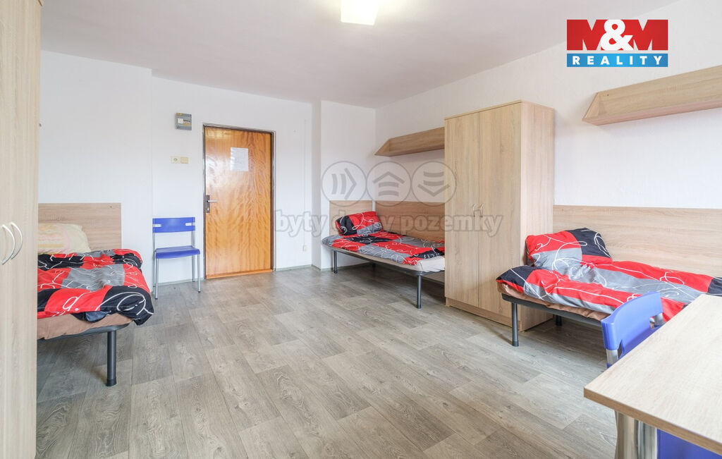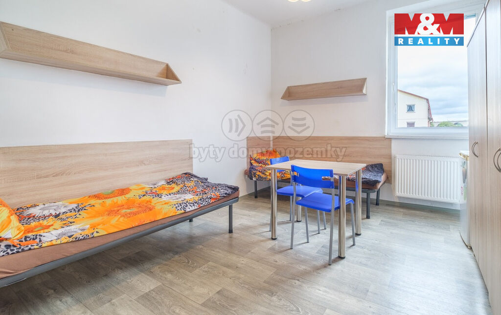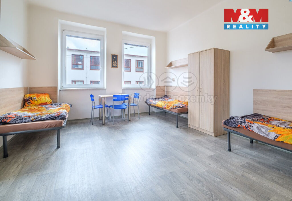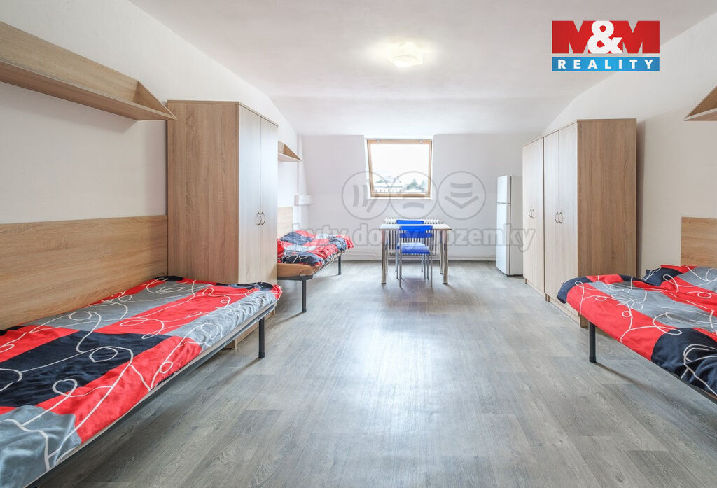 Podnikáte v ubytovacích službách nebo o podnikání v tomto oboru uvažujete? Využijte jedinečnou investiční příležitost právě teď. Čtyřpatrové ubytovací zařízení s kompletním vybavením a v plném provozu má kapacitu 60 lůžek. Na každém patře je společná koupelna, toalety a kuchyň. V budově jsou plastová okna, interiér prošel v r. 2019 částečnou renovací. Kapacita přilehlého parkoviště je cca pro 20 aut. Nemovitost je dostupná osobním autem, MHD i nákladními vozidly. Díky rozrůstající se průmyslové zóně v Chebu je zařízení neustále plně vytíženo a vzhledem k nově probíhající výstavbě, lze tento trend očekávat i do budoucna. Návratnost investice vychází na 10 let. Zařízení splňuje všechny zákonné normy pro provoz ubytovacího zařízení.