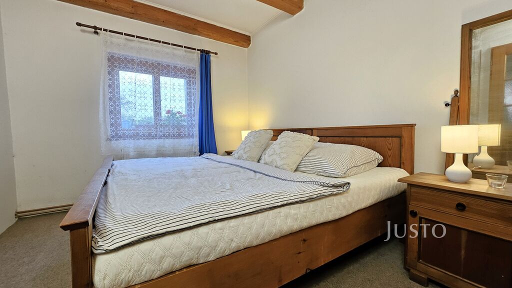 Na udržované zahradě je nadzemní bazén a několik okrasných dřevin. Celkově působí dům velmi útulně a klidně – ideální prostředí pro rodinnou rekreaci nebo pohodové trvalé bydlení. V posledních letech využíval majitel dům ke krátkodobým, rekreačním pronájmům. V případě zájmu je možné stejné využití.