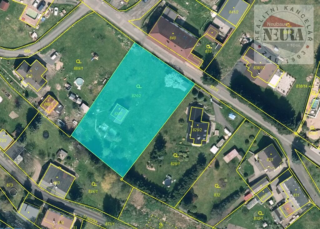 lehce svažitý pozemek o celkové výměře 1972 m2 se stavbou dřevěné chaty, napojeno jen na el. energii, vhodné k rekreaci s možností zahradničení,