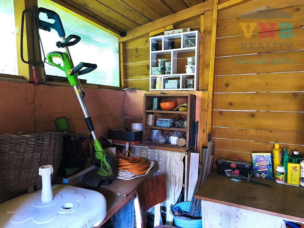 Nabízená chata je částečně podsklepená, v přízemí je obytná část s kuchyňkou. Do podkroví, které je celé upraveno jako ložnice (3 místa na spaní), je pohodlný vlez po dřevěných schůdkách. V chatě je také prostorná dílna pro uložení potřebného nářadí a zahradního příslušenství a samostatná místnost pro chemický záchod. K využití je i suchý záchod. Celá chata má rozvod elektřiny 220 V, zásuvky a osvětlení i v podkroví. Náklady na el. ročně činí 1000 Kč. Možnost využití vody z obecního vodovodního řádu na příjezdové cestě. Na chatě je nainstalována funkční satelitní anténa (bylo využíváno na kartu SKYLINK).