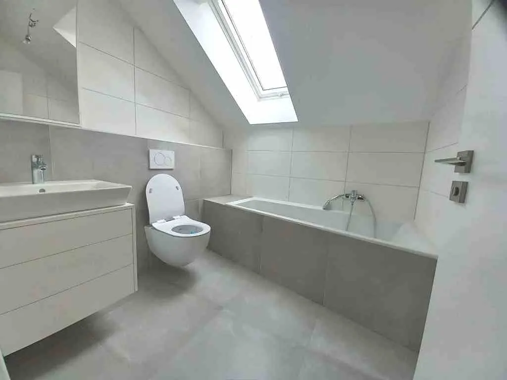 Podlahy: dlažba keramická, lepený vinyl zn. VEPO, sanitární keramika Concept.