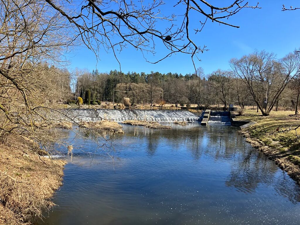 Součástí prodeje je i vila s věží k celkové rekonstrukci. Má zastavěnou plochu 138 m², dvě nadzemní podlaží a podkroví, věž má ještě o patro více. Je napojená na studnu areálu, elektřinu a má vlastní jímku. Za vilou a pilou je pole o výměře 17.701 m² oddělené od areálu pásem půdy. Mezi řekou a statkem jsou tři sádky vydlážděné kameny a napojené na řeku.
