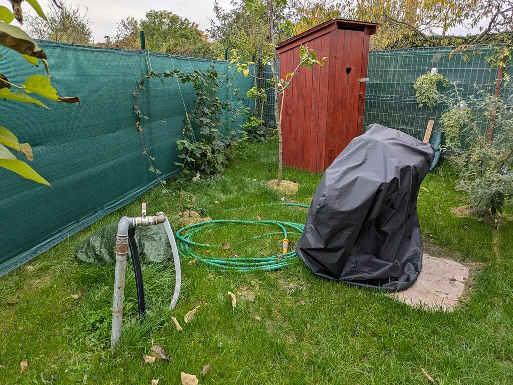 Na pozemku stojí nová chatka, která je připravena na elektřinu, ale ta je v řešení a momentálně je napojena na vlastní agregát, vlastní studna, WC.