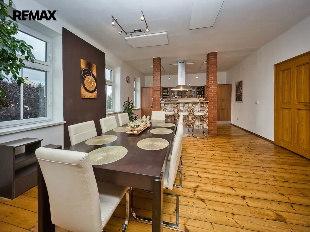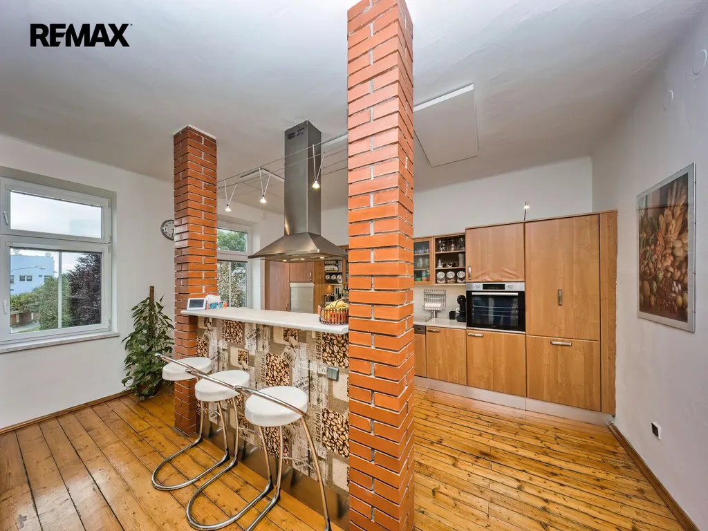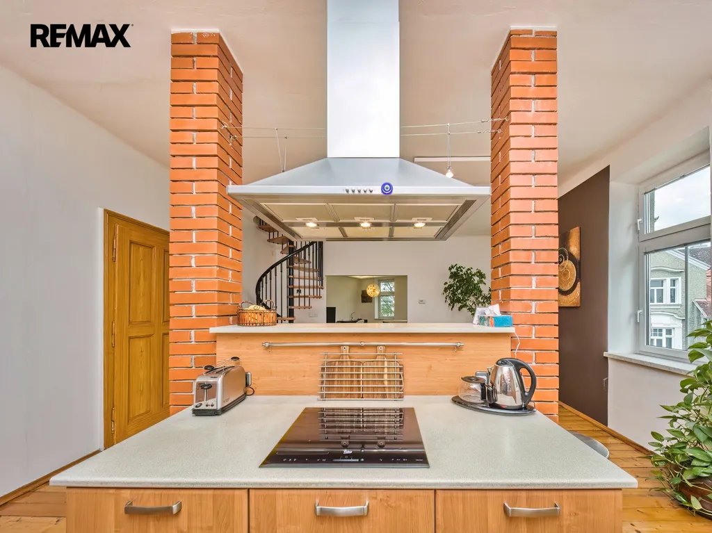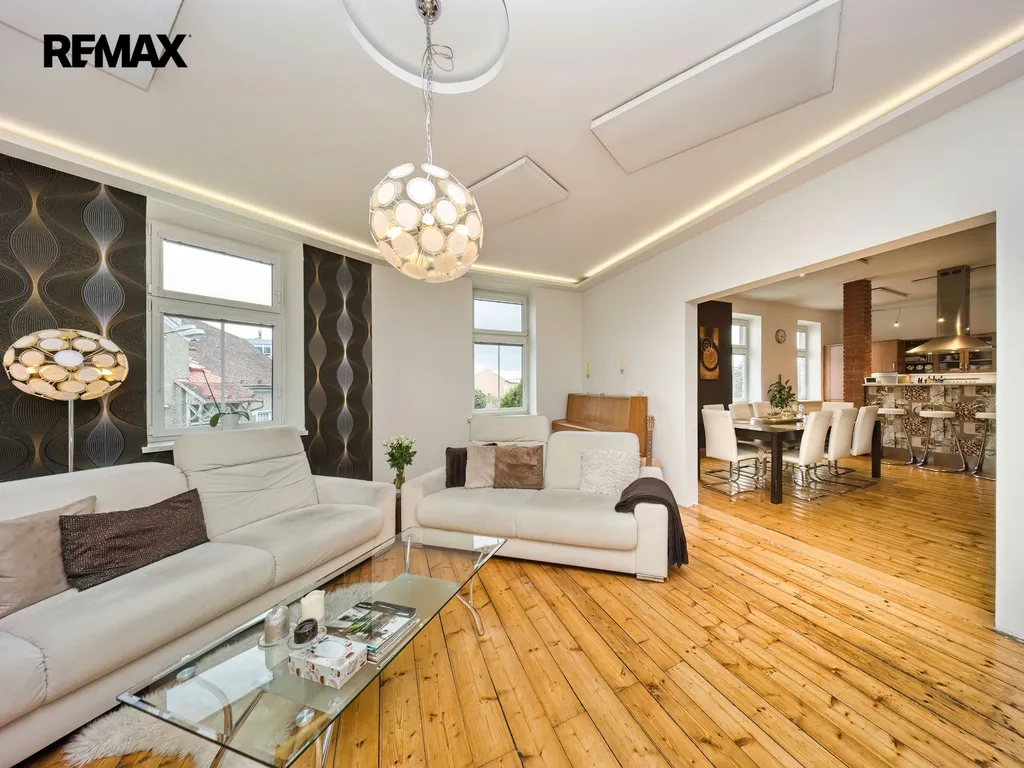 Nabízíme k prodeji mezonetový byt 5+1 s krytým parkovacím stáním, zahradou ve společném užívání, možnou terasou a sklepem v osobním vlastnictví o celkové evidované podlahové ploše 189 m². Byt se nachází ve 2. a 3. nadzemním podlaží (z celkem 3 NP) cihlového domu z roku 1919 bez výtahu.