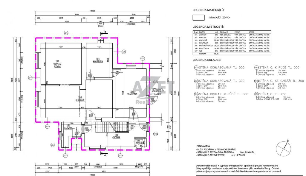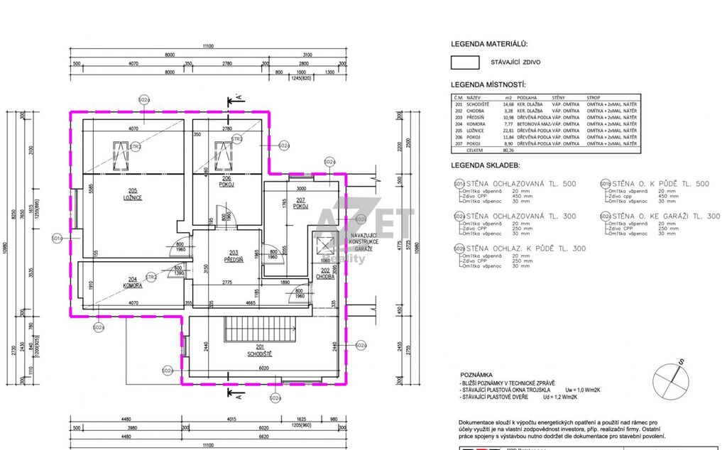 Dům je dvoupodlažní a podsklepený, celková podlahová plocha činí cca 200 m, zastavěná plocha 155 m a pozemek má výměru 666 m.