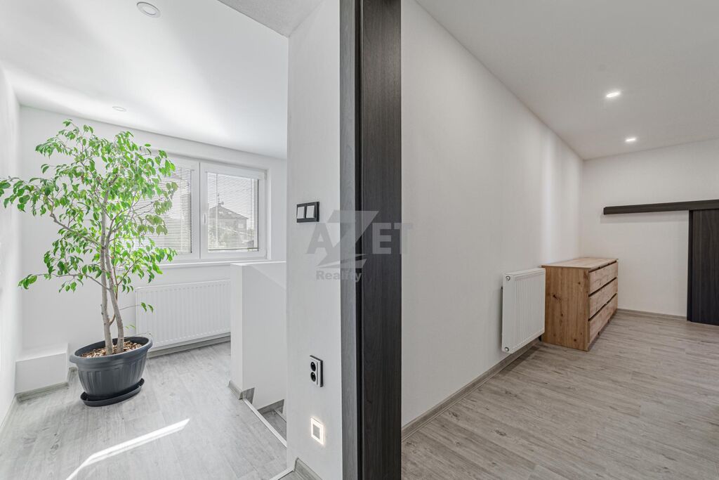 V přízemí vás přivítá světlá kuchyně s jídelnou propojená s obývacím pokojem, moderní koupelna s vanou a sprchovým koutem, praktická technická místnost a kotelna s přímým vstupem do garáže.