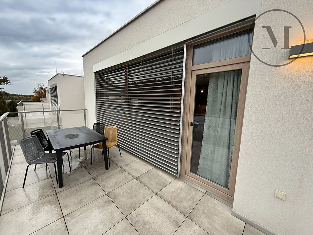 Prostorná terasa s výhledem do okolí je přístupná z ložnice a obývacího pokoje