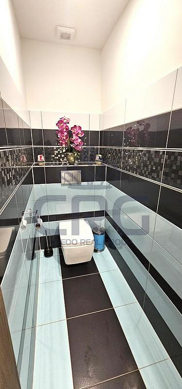 Při vstupu do domu se ocitneme v prostorné předsíni o velikosti cca 7,5 m². V místnosti je dostatek prostoru pro skříň či věšák pro odkládání. Dále pokračujeme do velkého obývacího pokoje, který je spojen s kuchyňským koutem. Velikost této místnosti je cca 50 m². Kuchyňská linka je vybavena sklokeramickou deskou, myčkou, troubou lednicí s mrazákem a digestoří. Součástí této místnosti je i komora či sklad s regály o velikosti cca 2,7 m². Z této části vejdeme po dvou schodech do příjemné světlé chodby, ve které je vestavná skříň se spoustou úložného prostoru a nachází se v ní i kotel, který zajišťuje vytápění domu samotného. Z chodby je vstup do ostatních samostatných místností v domě. Je zde nádherná velká koupelna o velikosti cca 6,6 m², ve které je k dispozici vana, toaleta a umyvadla. WC je samostatné a jeho výměra je cca 1,5 m². V domě jsou dva pokoje, z toho místnost, která původně sloužila jako dětsky pokoj je o velikosti cca 15,1 m². Druhá místnost, který sloužila majitelům jako ložnice má vlastní šatnu s vestavnými skříněmi a její celková plocha činí cca 18,7 m².