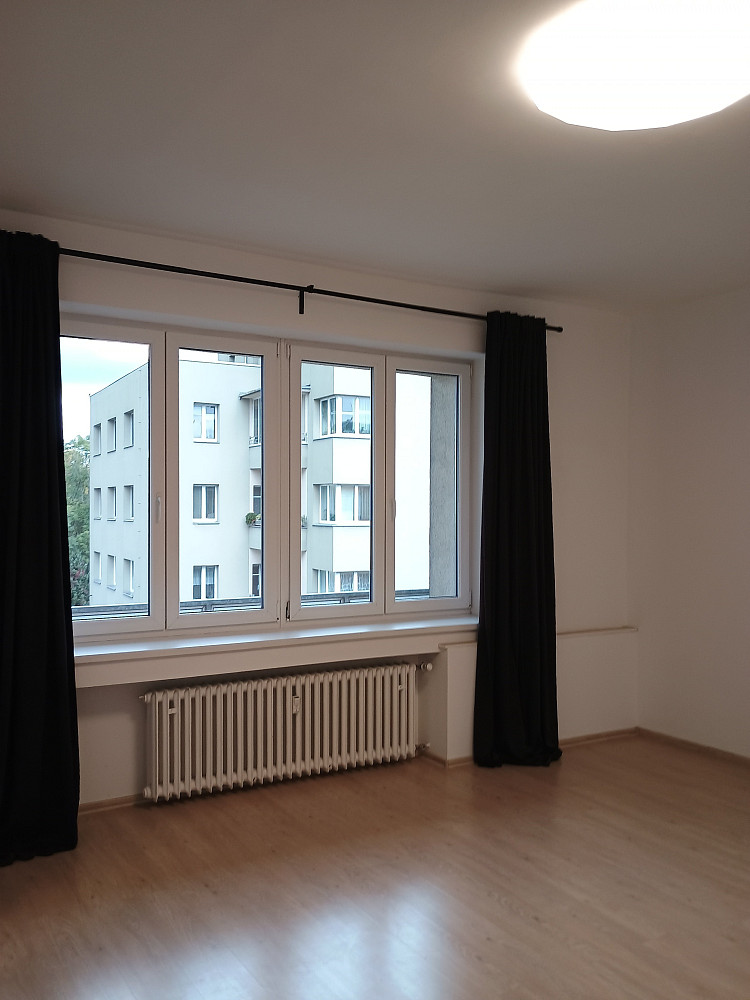 Byt se nachází ve 4. patře šestipodlažního domu s výtahem. Po vstupu vás přivítá prostorná vstupní chodba, která vás zavede samostatného pokoje, nebo přímo do koupelny s WC a také do kuchyně. Kuchyň je propojena s obývacím pokojem vstupem i otevřenou nikou ve stěně, což vytváří vzdušný a propojený prostor. Součástí kuchyně je i samostatná komora. Z obývacího pokoje se vstupuje na balkon. K bytu náleží sklepní kóje.