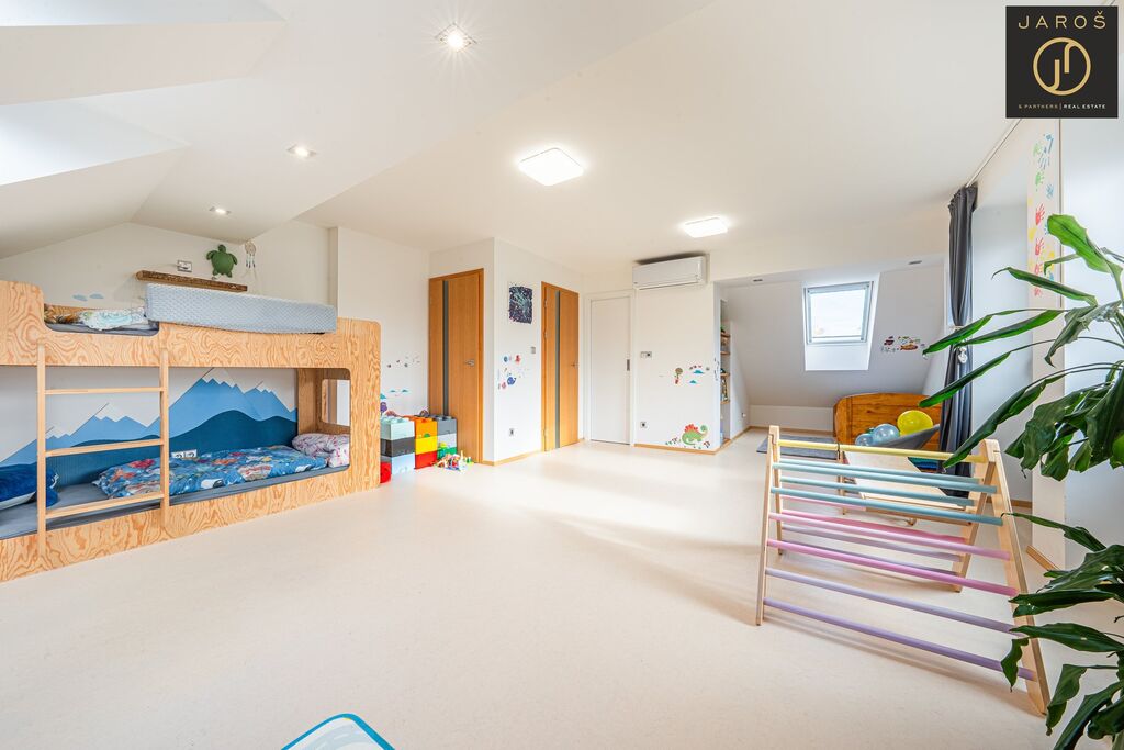 Patro: chodba, dva pokoje - každý se šatnou, koupelna s vanou a WC