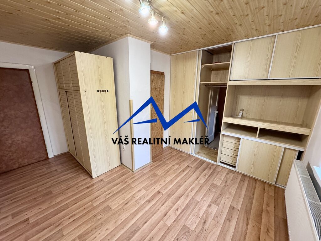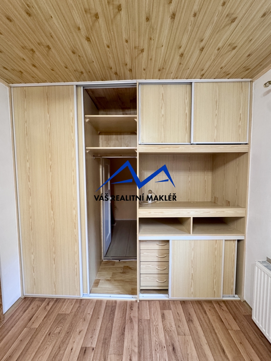 - vestavěný nábytek v jednom z pokojů – praktické úložné prostory