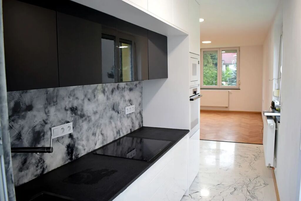 V Jihočeský kraji. ve vzdálenosti 9 km severovýchodně od Vimperka leží obec Čkyně, která se rozkládá při ústí Nahořanského potoka do řeky Volyňky v krásném šumavském podhůří. Čkyně je dobře dostupná všemi obvyklými druhy dopravy. Obcí prochází hlavní silnice č. 4 Strakonice Vimperk Strážný. A v této obci nabízíme krásný a světlý, nově a kompletně zrekonstruovaný byt s balkónem a dvěma sklepy. Nemovitost se nachází v 1. patře třípatrového cihlového domu s výtahem, o velikosti původně 3+1, po rekonstrukci 2+1. Má výměru 62,3 m2, sklepy 2,78 m2 a 2,99 m2. Rekonstrukce: nová okna s venkovními žaluziemi a parapety z afrického kamene, nové rozvody topení a radiátory elektrokotel a bojler na ohřev teplé vody, umístěno ve sklepě, nové štuky, v pokojích parkety, jinak benátské štuky s epoxidovou stěrkou, stěny v koupelně a WC benátské štuky přetažené epoxidem. Ve všech místnostech nové dveře, ve zděné koupelně protihlukové. Nová kuchyňská linka s vestavnými spotřebiči: myčka, pračka, sporák s troubou, mikrovlnka. Nově rozvody elektřiny, vody a odpadů. Nemovitost orientovaná na JZ, byt je světlý a teplý, proto i nízké náklady na energie. Je připravený k okamžitému nastěhování. V obci veškerá občanská vybavenost. V blízkosti Šumava, lesy, turistické vyžití, hraniční přechod Strážný. Doporučujeme prohlídku.