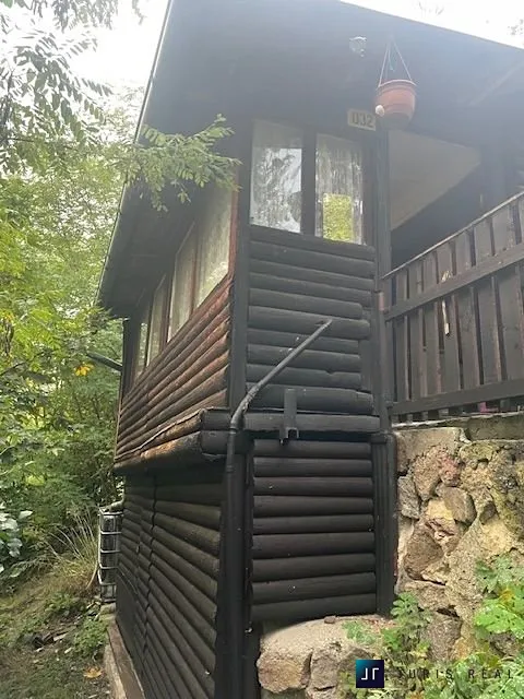 V přízemí chaty se nachází vstupní zastřešená veranda s příjemným pohledem do zeleně s kuchyňským koutem, ze které vstoupíme do obývacího prostoru s kamny na dřevo. Dále je tu vstup do nově postavené koupelny se sprchovým koutem a suchou toaletou. Do patra se vstupuje po žebříku, kde je malinká ložnice již obložená dřevem a úložný prostor – vše se dá spojit dohromady.