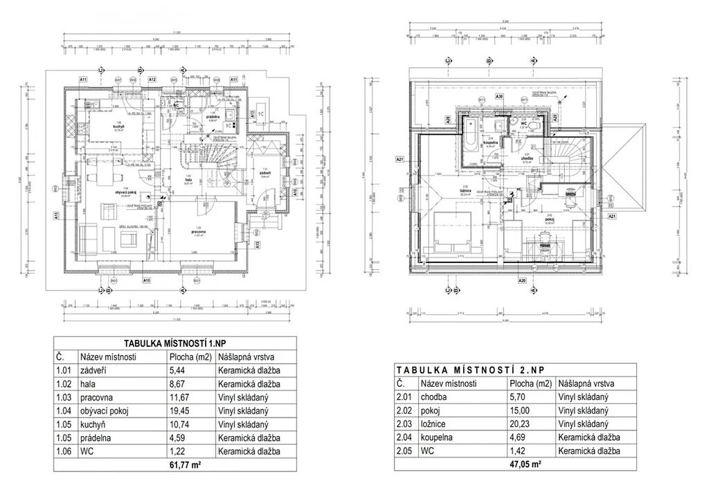 Dům je vybavený kuchyňskou linkou včetně spotřebičů, v obývacím pokoji se nachází sedací souprava se stolkem a jídelní stůl se židlemi. V každém pokoji je jedna šatní skříň a v koupelně je k dispozici pračka.