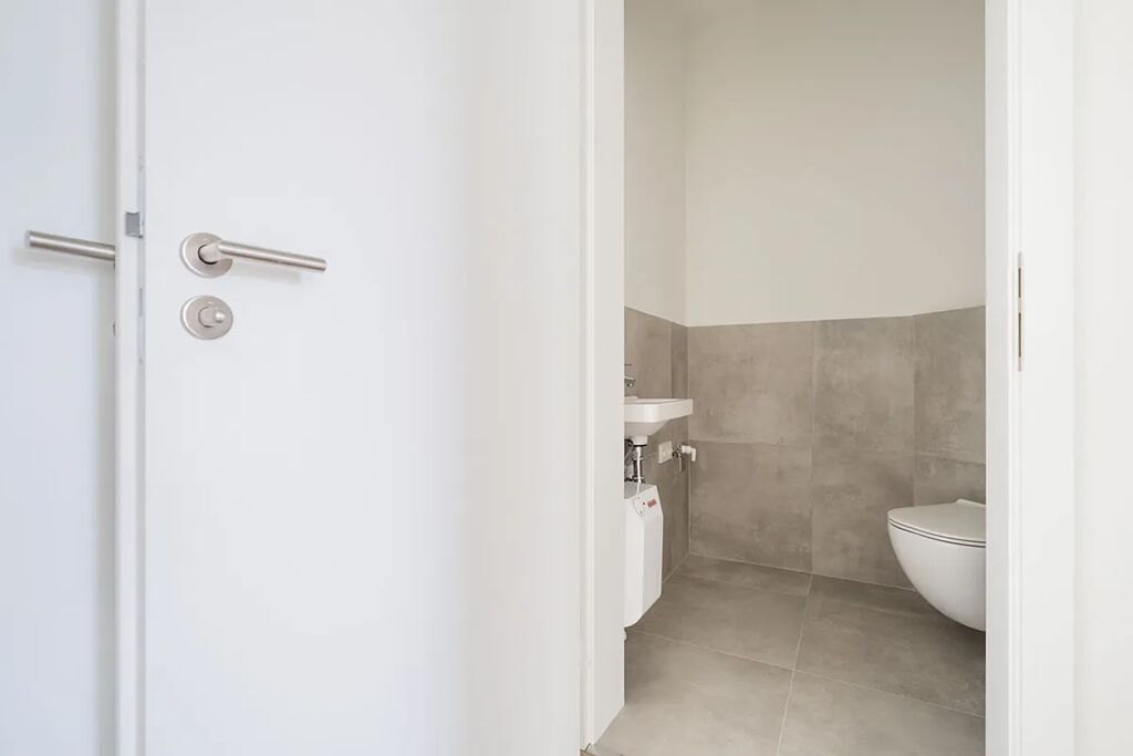 Interiér bytu je částečně zařízený a dispozice bytu nabízí předsíň (3,45m2) v bytě, se vstupem do obývacího pokoje (25,94m2) spojeného s kuchyní vybavenou novou kuchyňskou linkou se spotřebiči ( varná deska, trouba, vestavěná lednice s mrazákem a myčka). Dále přes chodbu (4,33m2) je vstup do 2 samostatných ložnic (11,95m2 a 11,58m2) zařízených vestavěnými skříněmi, a moderní koupelnu (4,20m2) s komfortním sprchovým koutem a toaletou. Další samostatná toaleta (2,17m2) má vstup z předsíně. Možnost dovybavit byt pračkou/sušičkou. Podlahy: vinylová a keramická dlažba. Topení v bytě: podlahové. K bytu náleží sklep. K dispozici je i kolárna a kočárkárna.