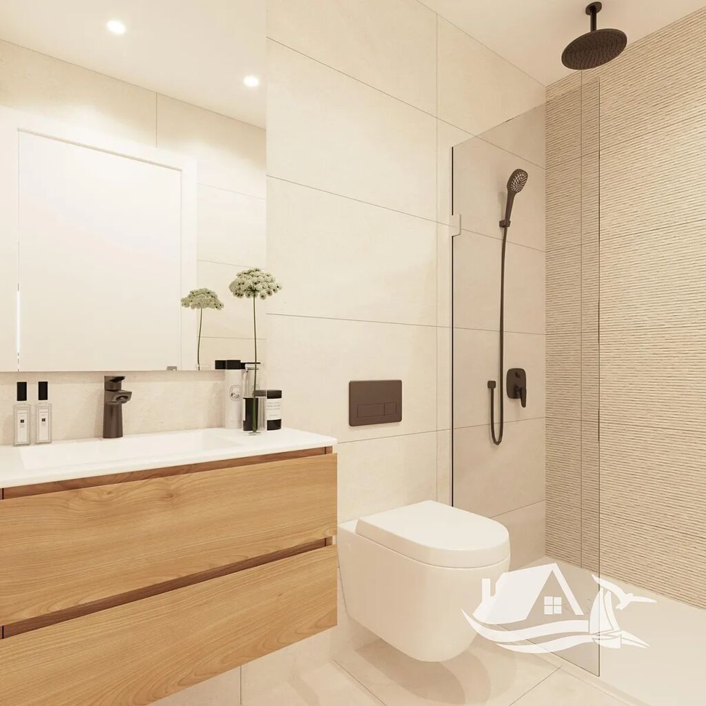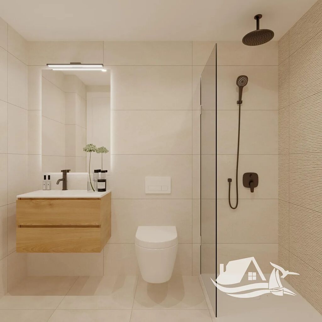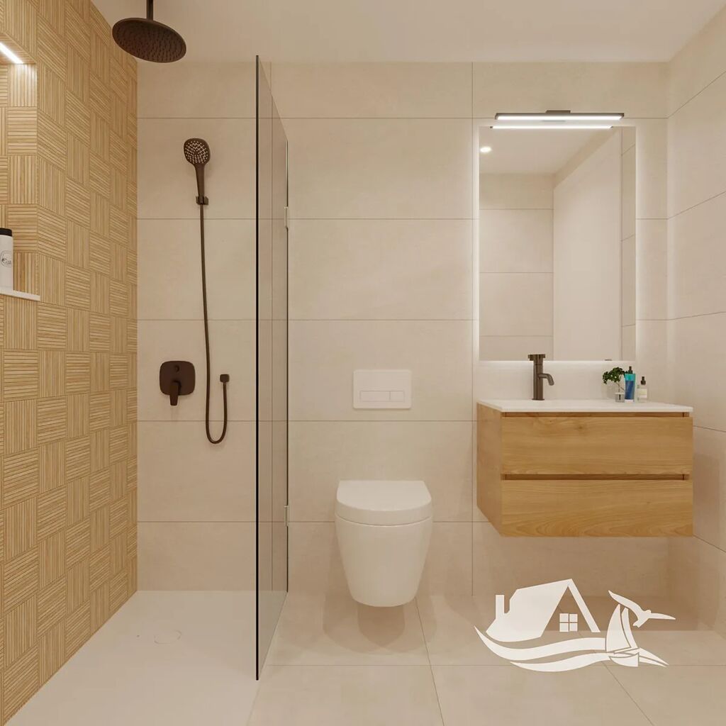 Tento moderní apartmán 4+kk s dvěma koupelnami a terasou o rozloze 90 m² nabízí komfortní a prostorné bydlení o celkové ploše 83 m². Nachází se pouhých 800 metrů od pláže, což zajišťuje kombinaci klidu a snadného přístupu k moři. Každý prostor je navržen tak, aby poskytoval dostatek světla a pohodlí, ideální pro rodinný život i relaxaci s přáteli.