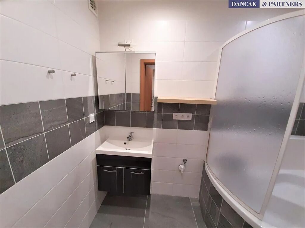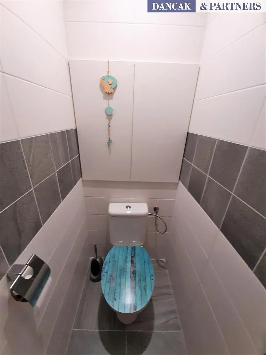 Koupelna nabízí rohovou vanu, keramické obklady, umyvadlo se skříňkou a prostor pro pračku. Toaleta je samostatná. Byt má nové omítky, interiérové dveře, elektroinstalaci v mědi, podlahy PVC. V předsíni se nachází praktická vestavěná skříň.