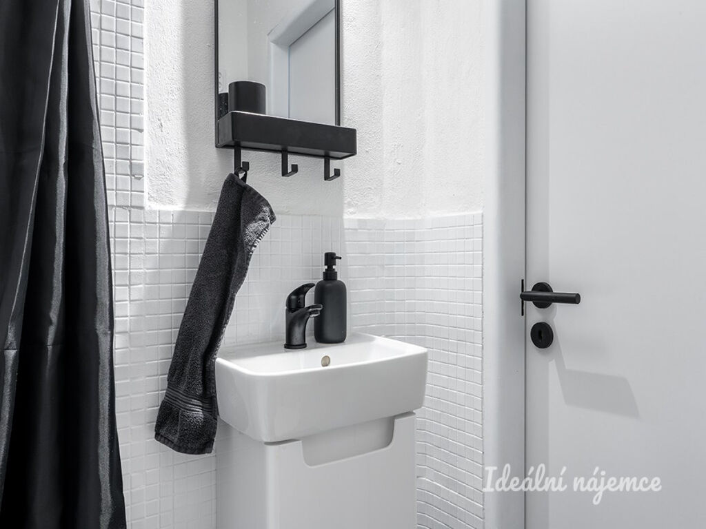 Byt je plně vybavený, takže se můžete ihned nastěhovat bez nutnosti dalších investic do zařízení. Moderní kuchyň je vybavena lednicí, elektrickou a mikrovlnnou troubou, myčkou, digestoří, varnou deskou a jídelním koutem. Prosvětlená obytná část nabízí pohodlný rozkládací gauč, konferenční stolek a dostatek úložného prostoru. Stylová koupelna je vybavena sprchovým koutem, umyvadlem, pračkou a WC.