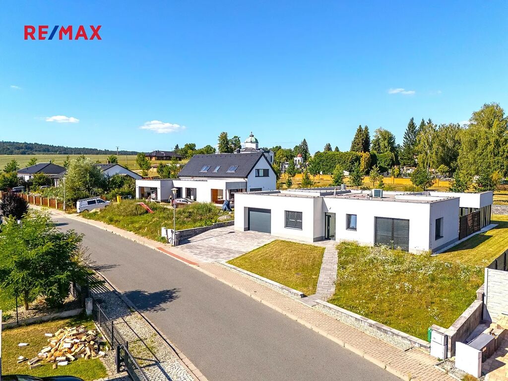 Dům ve tvaru písmene C je řešen celý jako bezbariérový s dispozičním řešením 5kk, dále disponuje atriovou terasou, vnitřním vyhřívaným bazénem, finskou saunou, parní místností, fit zónou, prostornou garáží a dvěma koupelnami. Jelikož má jeden z pokojů i vlastní sociální zázemí a přípravu pro kuchyňskou linku, může tato garsoniera sloužit nejen pro hosty, ale bude vhodná i pro starší děti a jejich partnery, nebo prarodiče, kteří ocení samostatný bezbariérový vstup do zahrady.