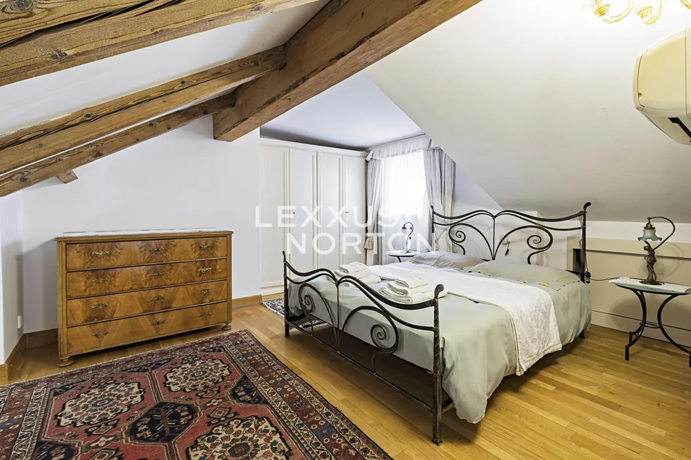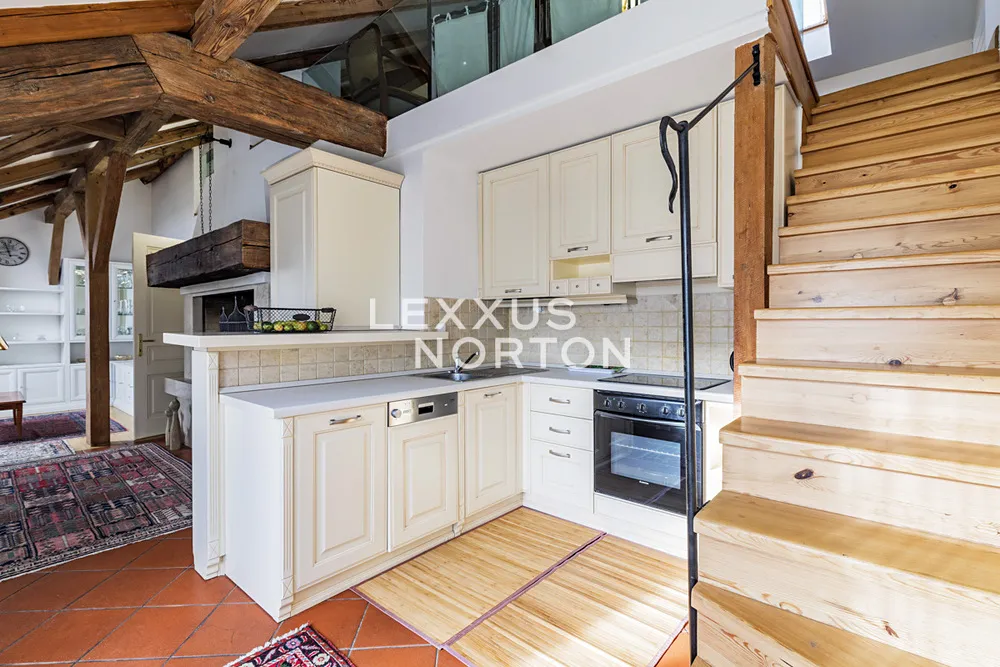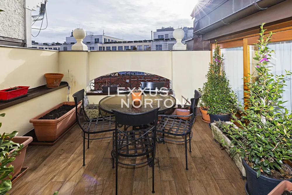 Nadstandardní, mezonetový byt 3+kk ve zrekonstruovaném domě s výtahem má krásný, pohodlný obývací pokoj s krbem, plně vybavený, luxusní kuchyňský kout (s troubou, lednicí, mrazákem, myčkou nádobí, sklokeramickou deskou, digestoří), jídelnu a nádhernou terasu s posezením. Dále 2 útulné ložnice a krásnou koupelnu s vanou, sprchou, umyvadlem, bidetem a toaletou. Tento přepychový byt k pronájmu je zařízený stylovým nábytkem, k dispozici má internetové připojení a klimatizaci. K dispozici od 31.1.2026.
