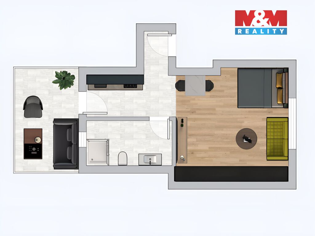 Pronajměte si unikátní byt 1+kk o rozloze 33 m² na prestižní adrese Smetanovo náměstí v centru Pardubic.