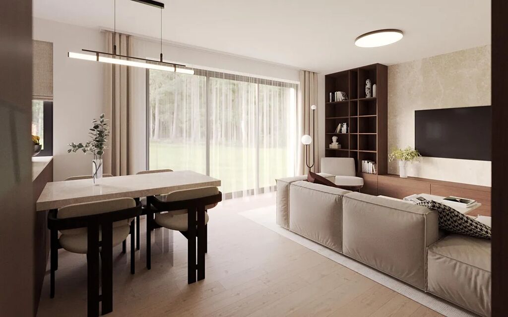 Vysoký standard vybavení zahrnuje dřevěné podlahy, přípravu na chytrou domácnost a další prémiové prvky, které zajišťují pohodlné a bezstarostné bydlení.