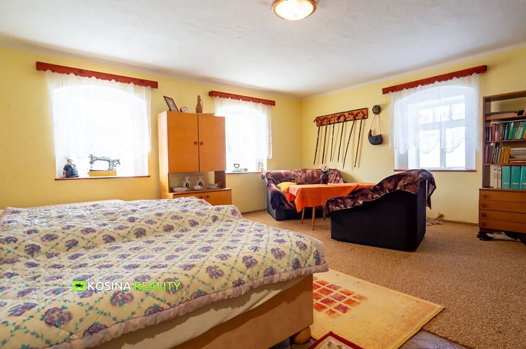 Nabízím k prodeji bývalé zemědělské stavení, jedná s o starší rodinný dům postavený roku 1919 (o zastavěné ploše 152 m2), dvě zemědělské stavby (o zastavěné ploše 125 m2, 95 m2) a okolní pozemky ve funkčním celku s domem o výměře 1.923 m2. Rodinný dům není podsklepený, má dvě nadzemní podlaží a neobývané podkroví. V prvním nadzemním podlaží domu, postaveného na pozemku o výměře 160 m2, je na západní části hospodářský prostor, kdysi chlév a v současné době dílna. Ve východní části domu je předsíň se schodištěm, koupelna, kuchyně a pokoj. V kuchyni je kuchyňský kout s kamny na tuhá paliva a plynový sporák napojený na plynovou bombu. V pokoji (který je z části přístavkem domu vybudovaným před 30 lety) jsou krbová kamna. V koupelně je sprchový kout, umyvadlo a WC. Do druhého nadzemního podlaží vede kameninové schodiště, kde se nachází jeden pokoj s krbovými kamny nad pokojem s kuchyňským koutem a dva pokoje nad hospodářskou částí domu. Do neobývaného podkroví, kde se nachází otevřený prostor, vede dřevné schodiště. Vytápění domu je kamny na tuhá paliva v pokojích a krbovými kamny. Ohřev teplé užitkové vody je elektrickým bojlerem umístěným v koupelně. V celém domě jsou dřevěná okna. Na střeše jsou pálené tašky. Dům je napojený na elektřinu, místní veřejný vodovod (z obecního vrtu) a odpady jsou svedeny do žumpy. U domu jsou dále dvě větší zděné zemědělské stavby. Jedna je s dřevěnými vraty na dvůr domu a druhé naproti vedou ven ze stavení. Druhá zemědělská stavba je o 40 m2 zkrácená s volným odkrytým místem, zbytek stavby je zastřešený s vraty z ulice a otevřeným výstupem do dvora, tato stavba slouží jako garáž, či k posezení a rekreačnímu využití. Zahrada je udržovaná. Předmětné nemovitosti tvoří klidné příjemné místo jak k životu, tak i k rekreaci. Poskytuje soukromí v klidné vesnické oblasti bez průmyslových podniků. Vzdušnou čarou je to 3 km do Německého Bad Neualbenreuth, kde jsou lázně s léčivou vodou Sybilen Bad. Průkaz energetické náročnosti budovy je třída G. Pro více informací mě kontaktujte.