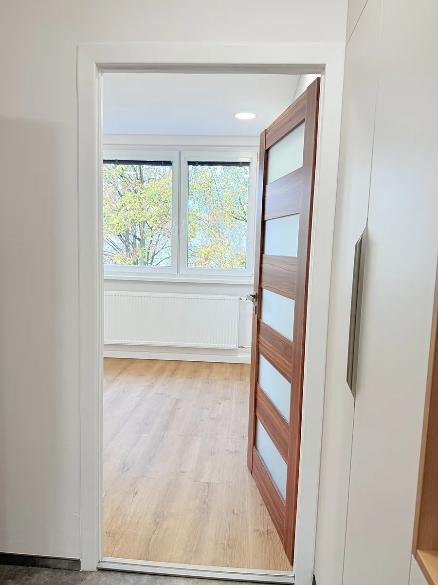 - pokoj, který má výhled do stromů a kde je prostorná nová šatní skříň