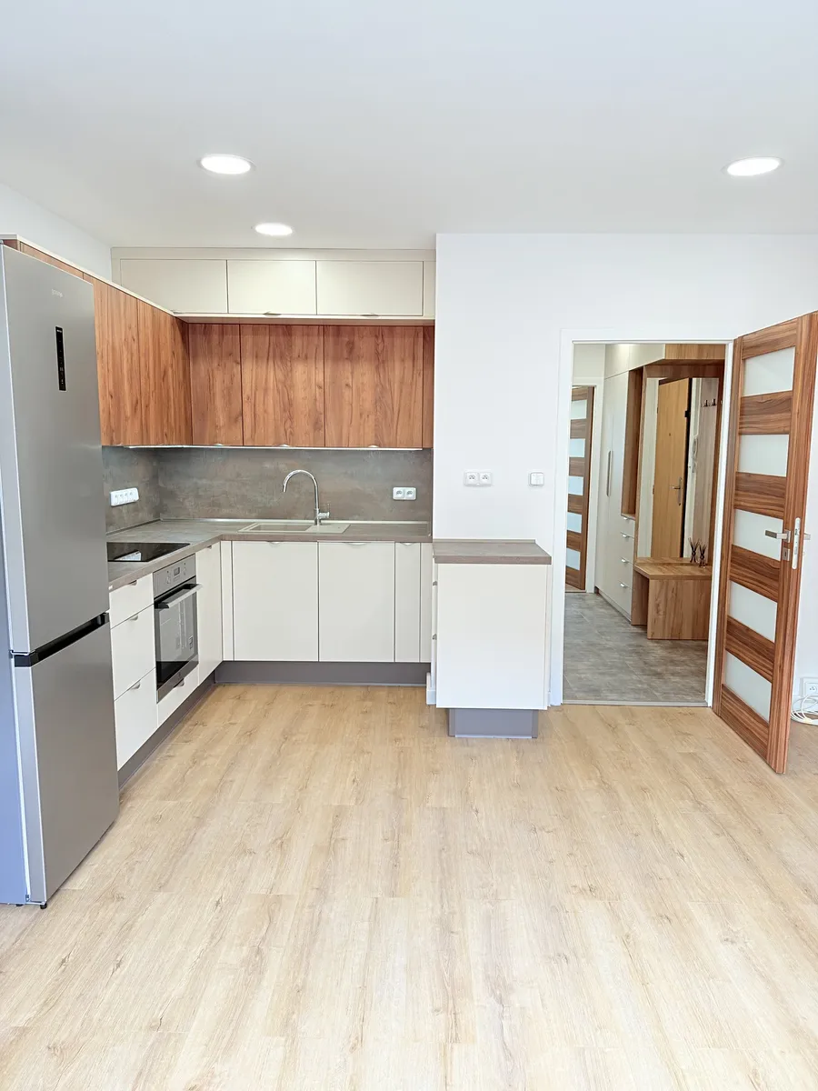 - obývaci pokoj s novou kuchyňskou linkou s vestavnými spotřebiči (myčka, indukce, trouba, lednice, mrazák)