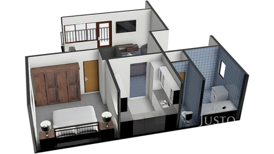2. NP: kuchyně, ložnice, obývací pokoj, koupelna a WC.