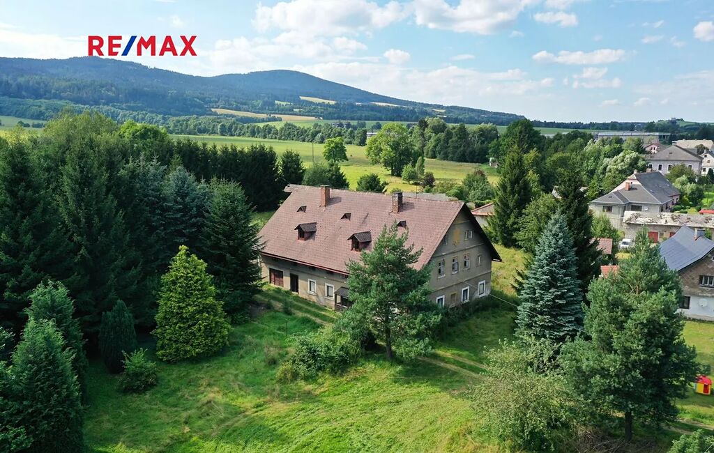 Nabízíme rozsáhlé pozemky, součástí velký rodinný dům k určený k rekonstrukci, ve vynikající lokalitě Orlických hor, Červená Voda, 4 km vzdálený horský resort Mlýnický Dvůr.