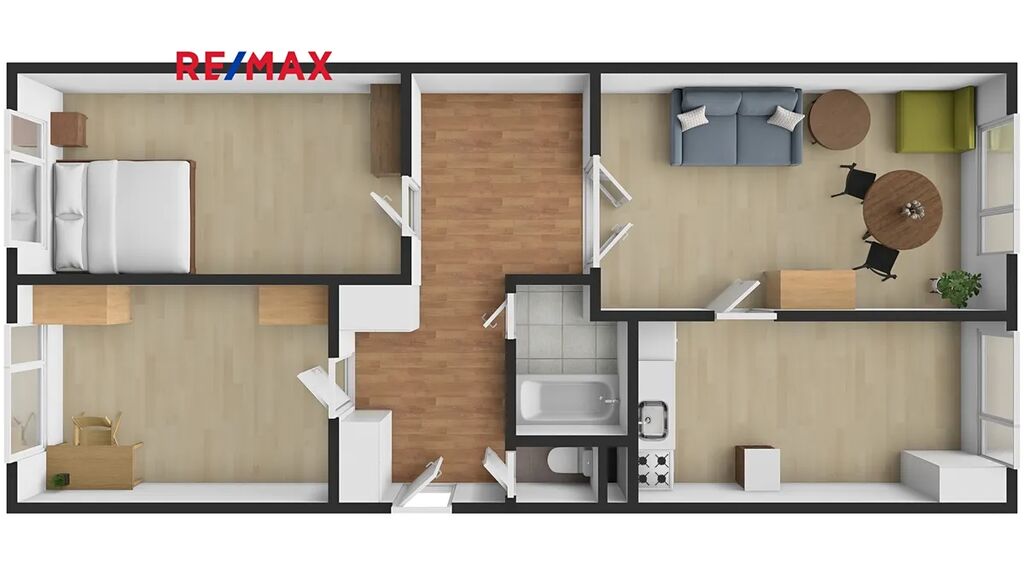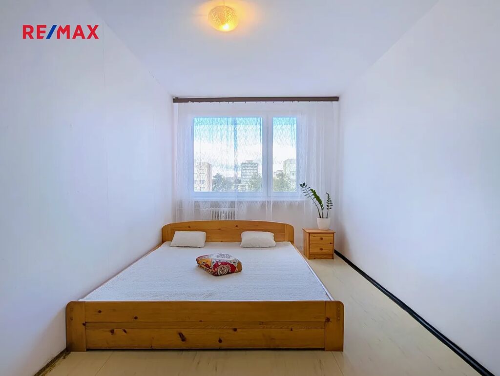 Dispozice bytu je velmi praktická – obývací pokoj s kuchyní je orientován na jih a díky tomu je prostor krásně prosvětlený po celý den. Dvě samostatné ložnice směřují na sever. Uprostřed nalezneme předsíň, která nabízí dostatek úložného prostoru. Byt je v udržovaném stavu – umakartové jádro a původní elektrorozvody. Dům prošel výměnou oken, opravou střechy, zateplením a je opatřen kamerovým systémem.