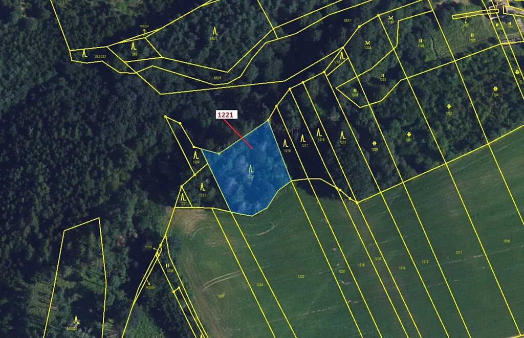 Lesní pozemek o výměře 1590 m2, parcelní číslo 1221, podíl 1/1, katastrální území Spešov, obec Spešov, obec s rozšířenou působností Blansko, okres Blansko, Jihomoravský kraj. Po těžbě.