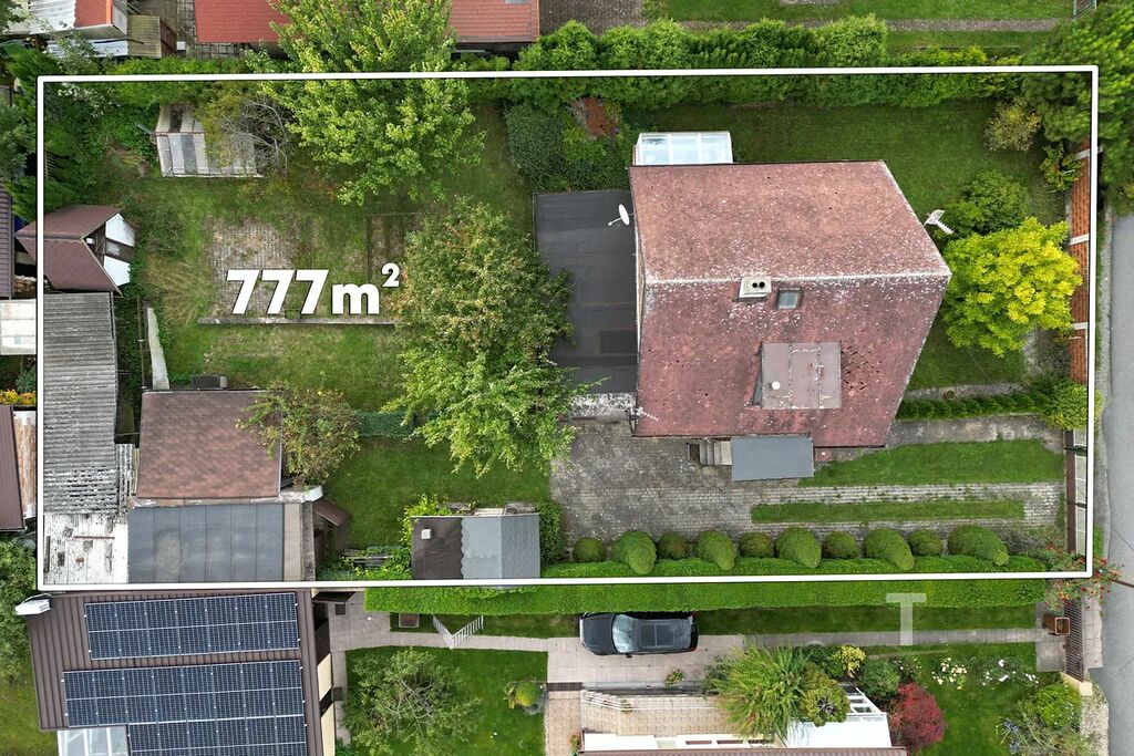 Pozemek je rovinatý, oplocený, s již vzrostlou zelení. Poskytuje tedy soukromí a nabízí možnost parkování na vlastním pozemku. Celková plocha pozemku činí 777 m2.