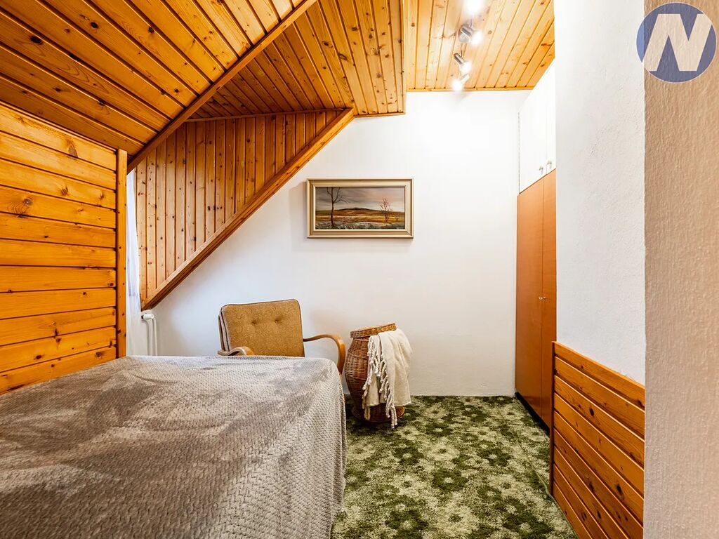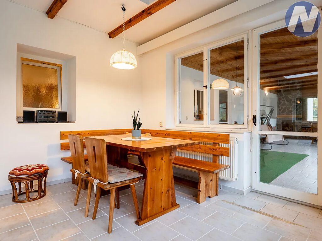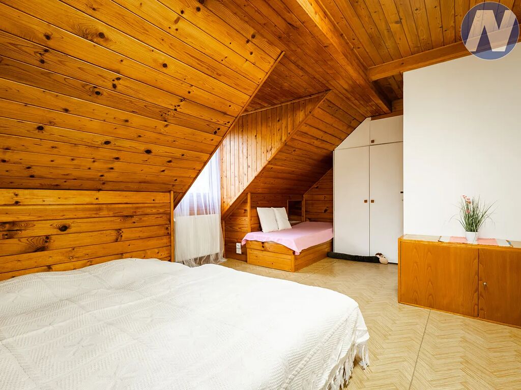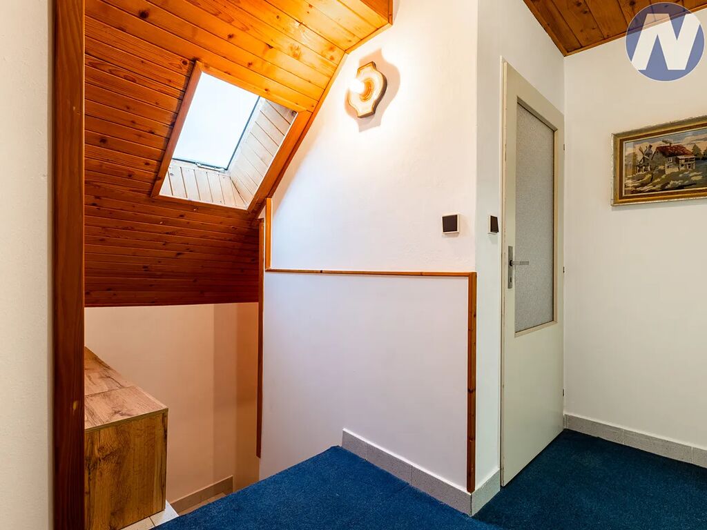 Dům v přízemí nabízí obývací část se zimní zahradou a krbem, kuchyni, koupelnu s vanou a samostatné WC. V patře se nachází čtyři podkrovní pokoje, druhá koupelna se sprchou a WC – dostatek prostoru pro rodinu i přátele.