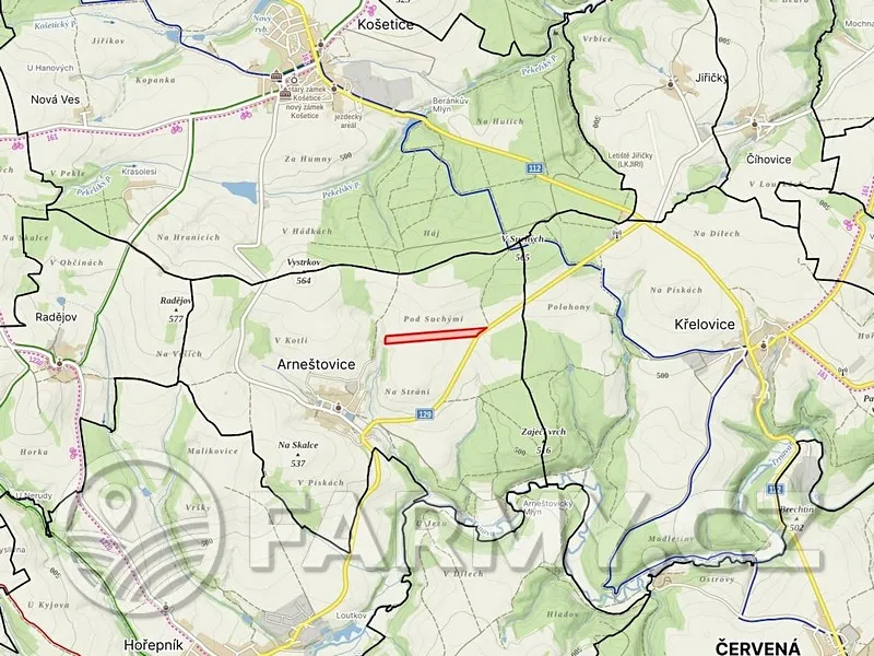 Na pozemcích se hospodaří v konvenčním režimu. Pozemky se nacházejí v severní polovině Křemešnické vrchoviny, v příjemné krajině nedaleko Červené Řečice, vodní nádrže Trnávka a jedné z nejvýznamnějších regionálních památek, kláštera Želiv. Více informací na vyžádání.