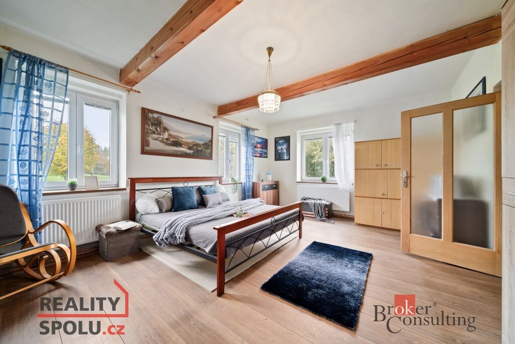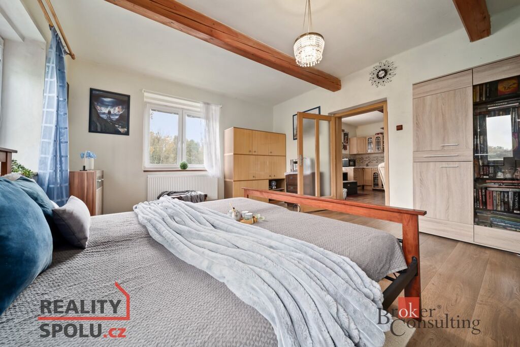Na dům navazuje samostatná obytná budova – částečně po rekonstrukci, se dvěma pokoji a chodbou v přízemí a dalším pokojem s balkonem v podkroví.