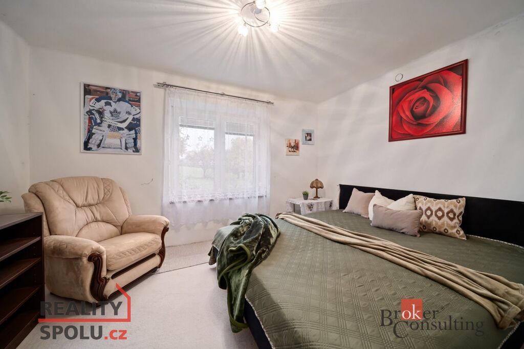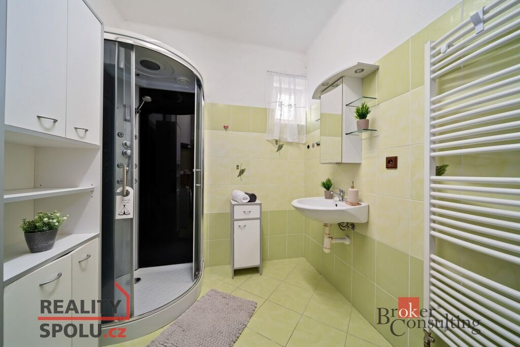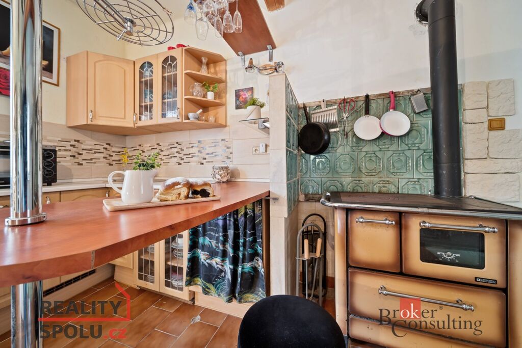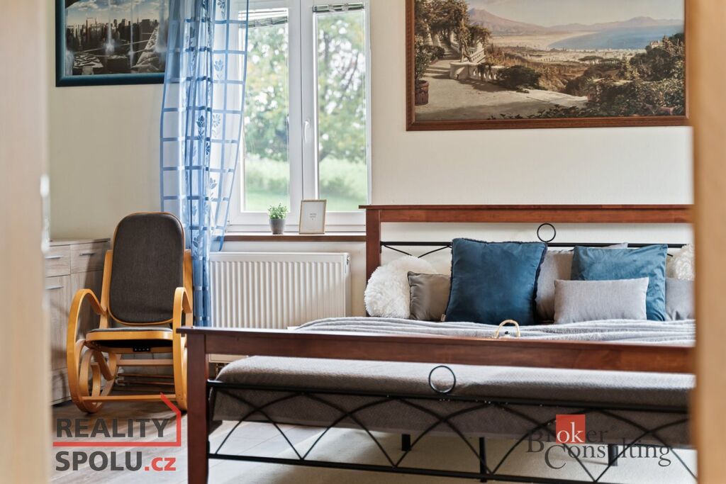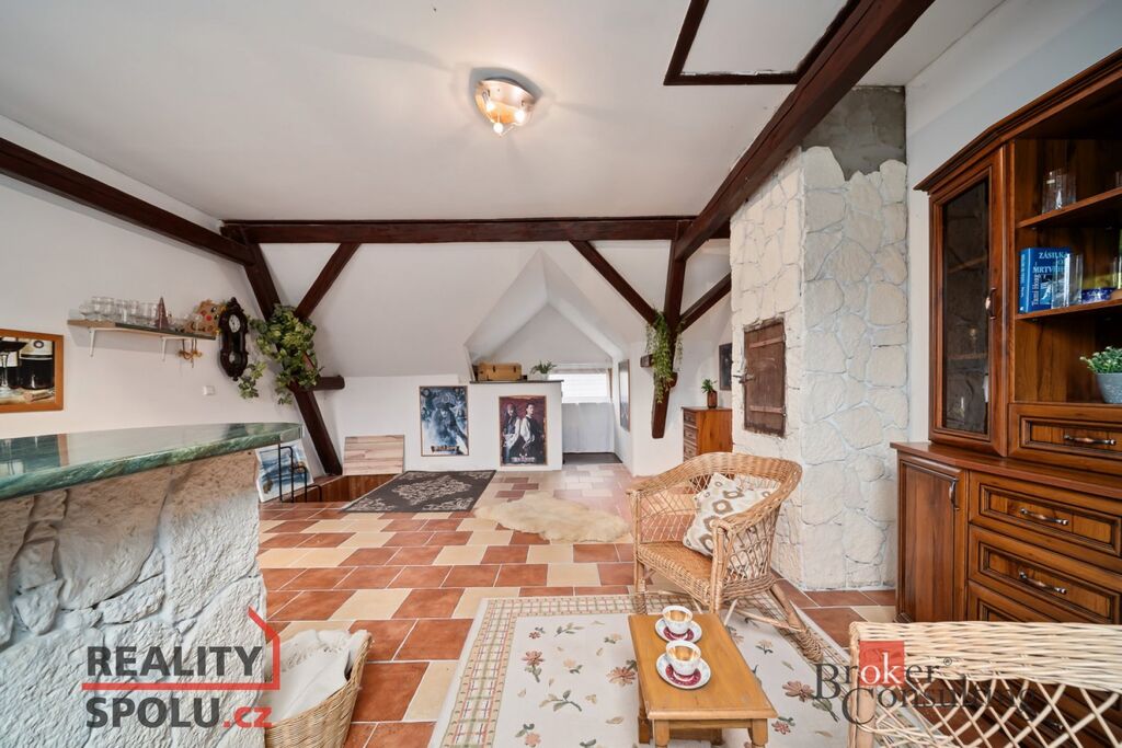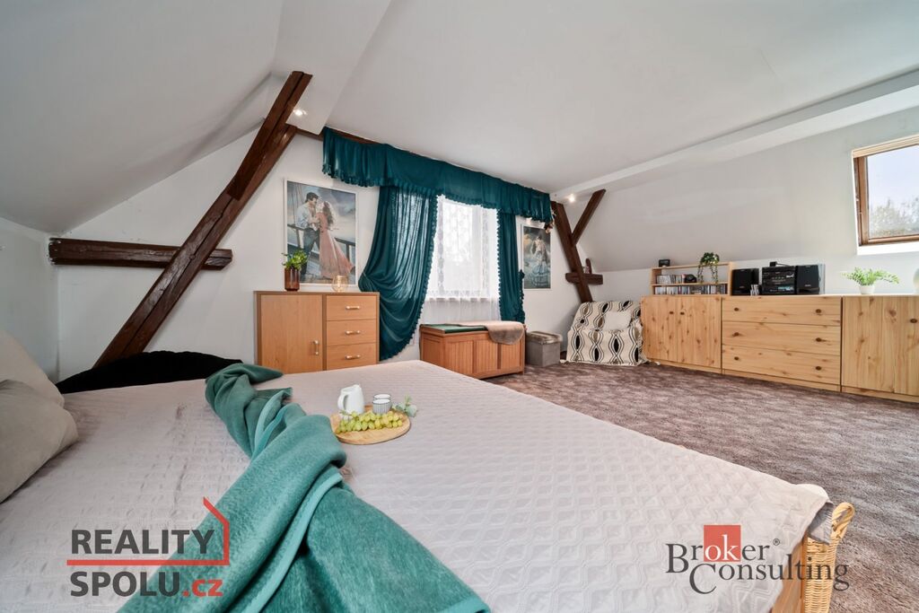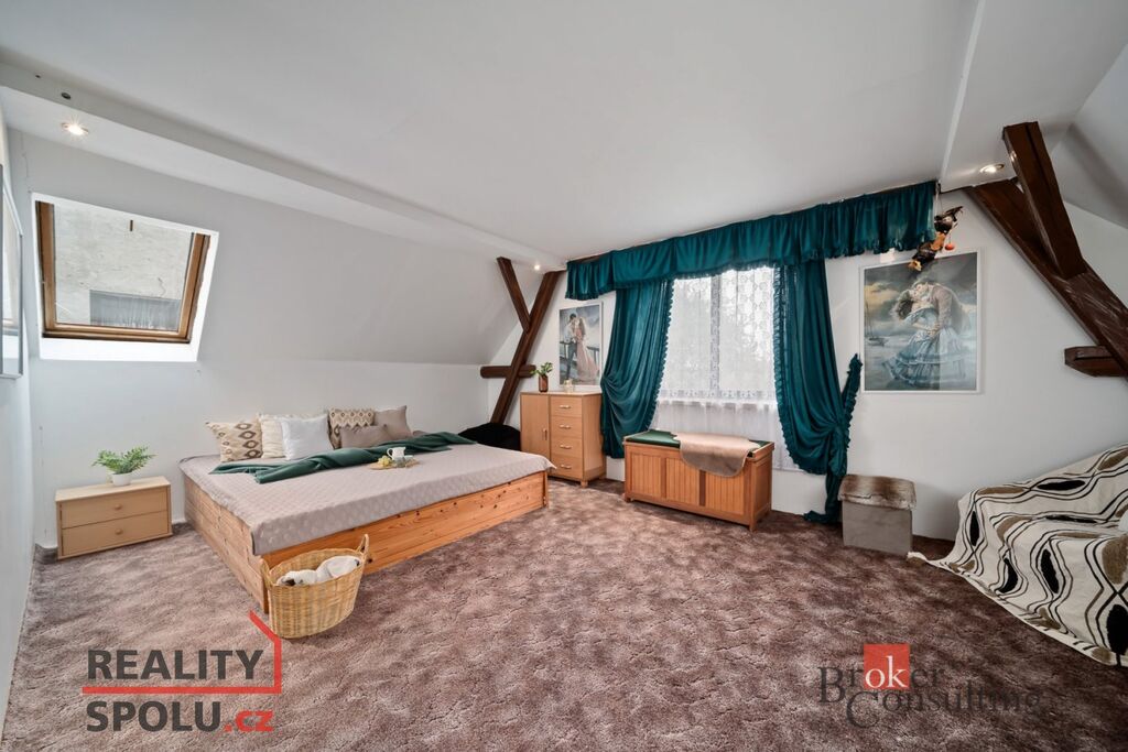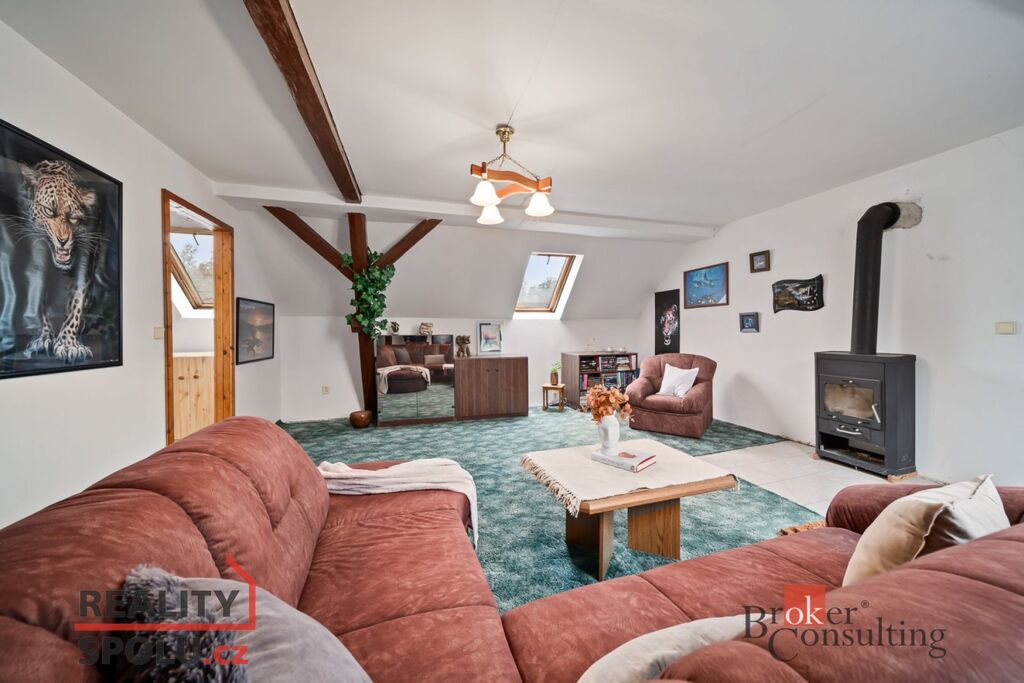 V podkroví jsou tři prostorné pokoje, které dávají možnost vytvořit další byt, pracovnu nebo pokoj pro hosty.